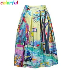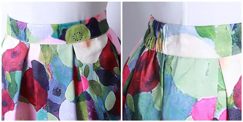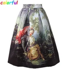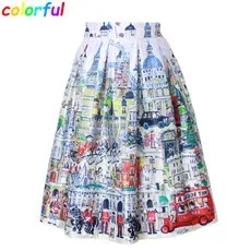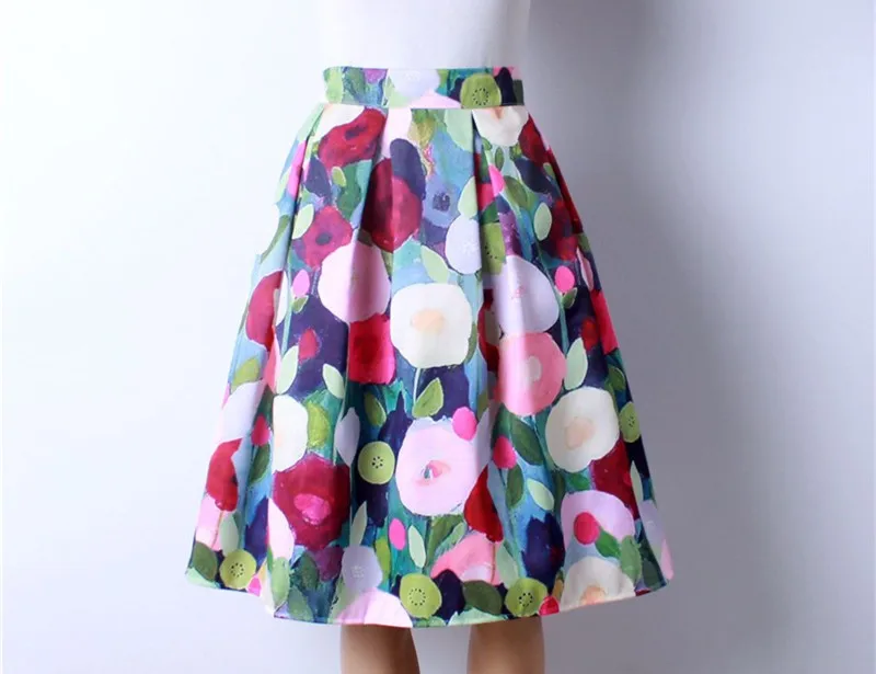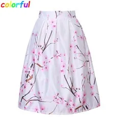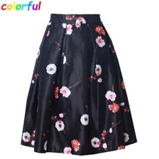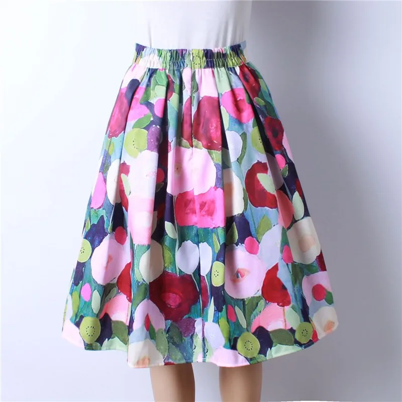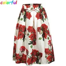 New Flared Satin Women Skirt Retro Ladies Elegant Fashion Floral Printed High Waist Midi Skirt Holiday Saia Femininas SK809