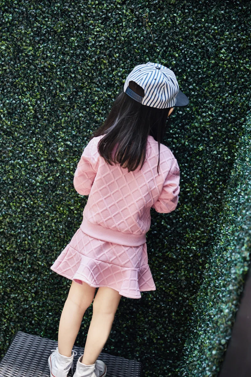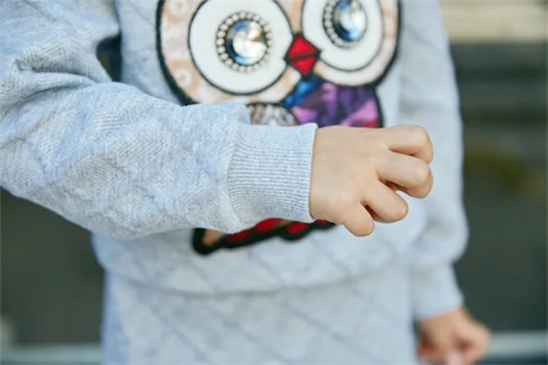 New Girls Clothes Set Long Sleeve Autumn Kids Girl Owl Clothing Suit with Rhinestone Grey Pink Sweatshirt and Fishtail Skirt