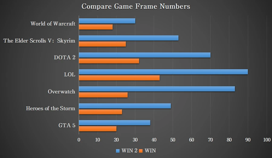 “League of Legends”, even on maximum settings, 60fps can be achieved, heavy action sections at 48fps, an average of 54fps;