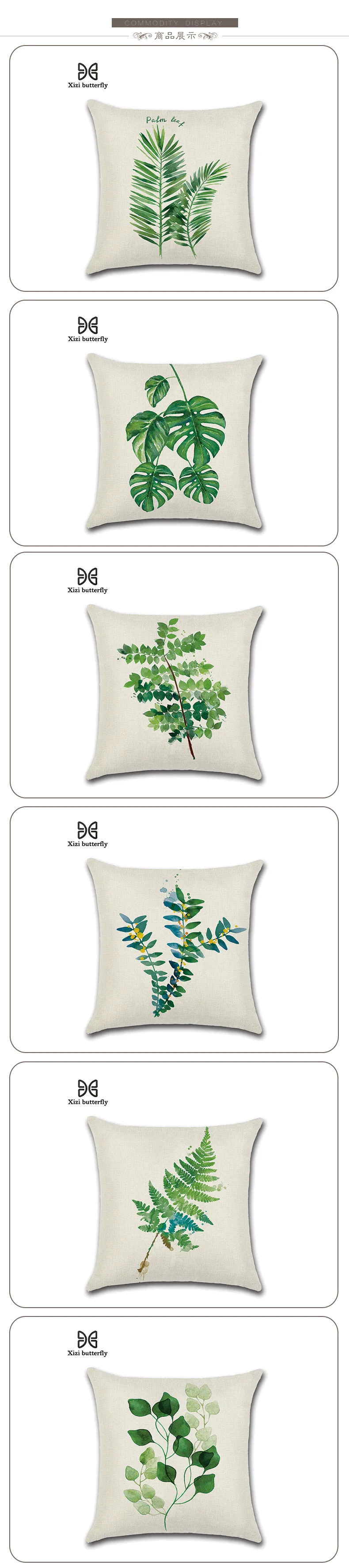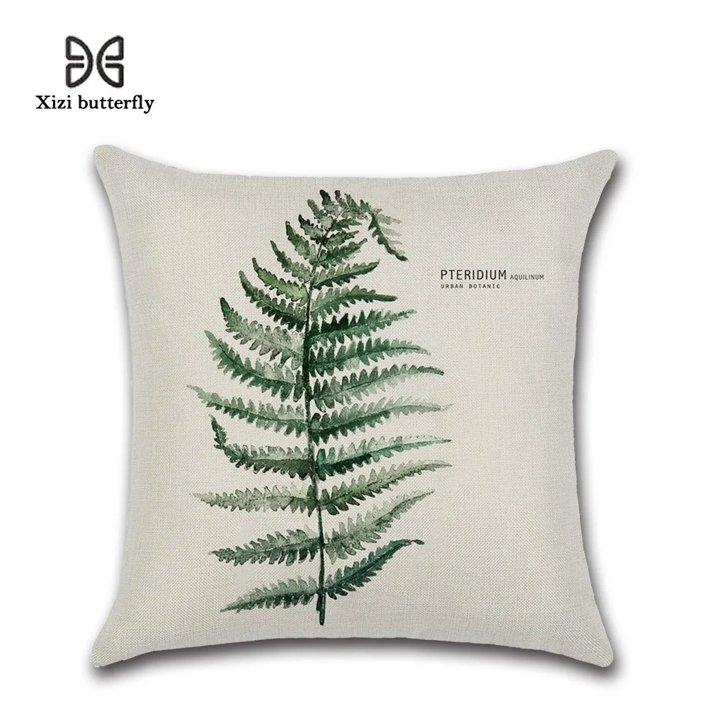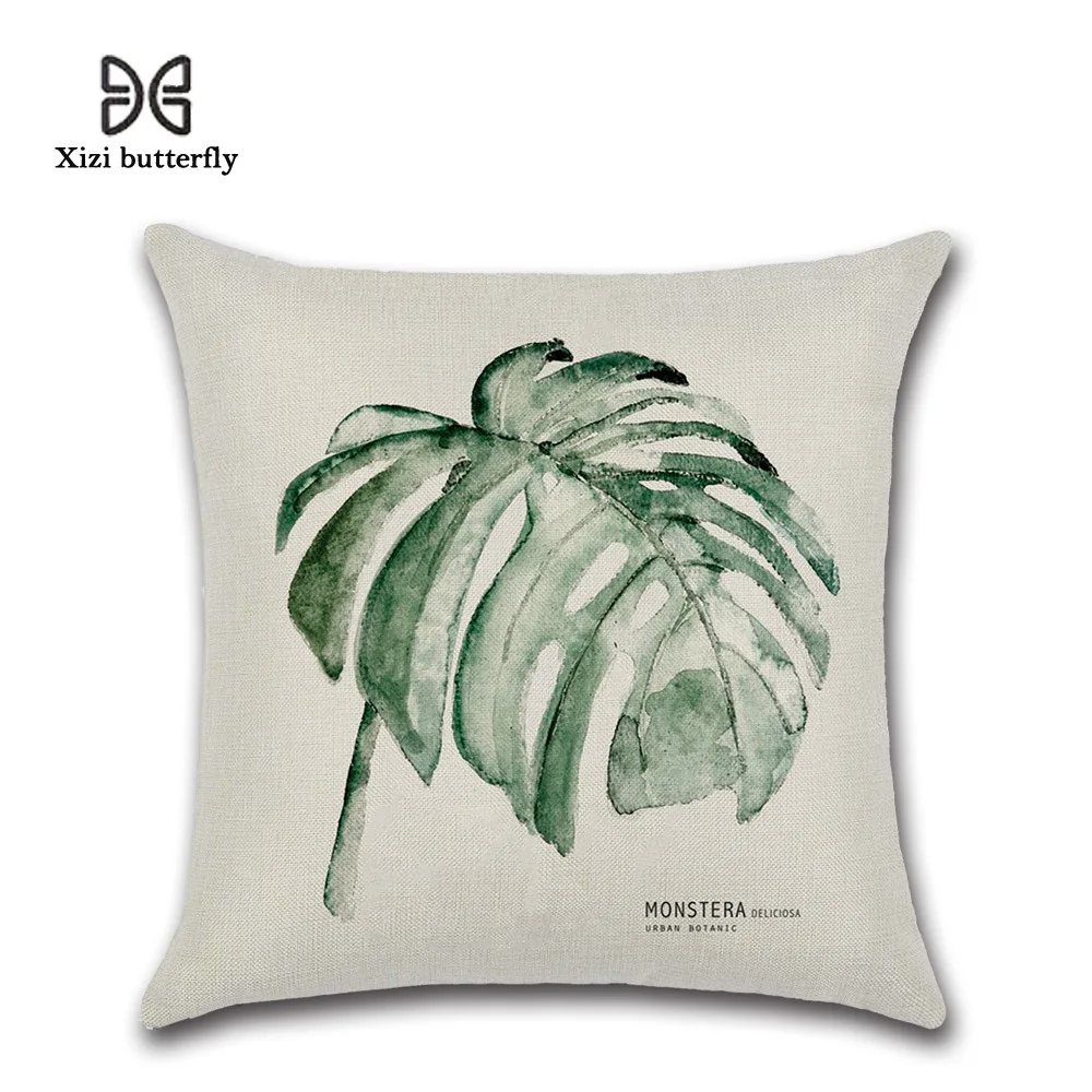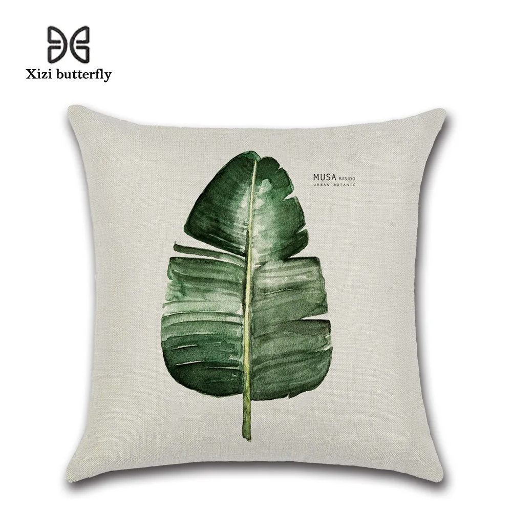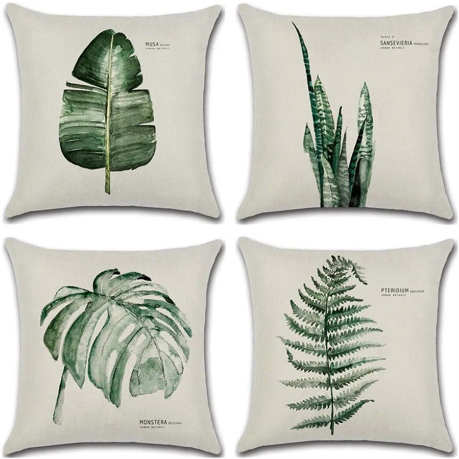 New Green Leaf Print Cushion Set 45*45cm Cushion Cover Linen Throw Pillow Car Home Decoration Decorative Pillowcase