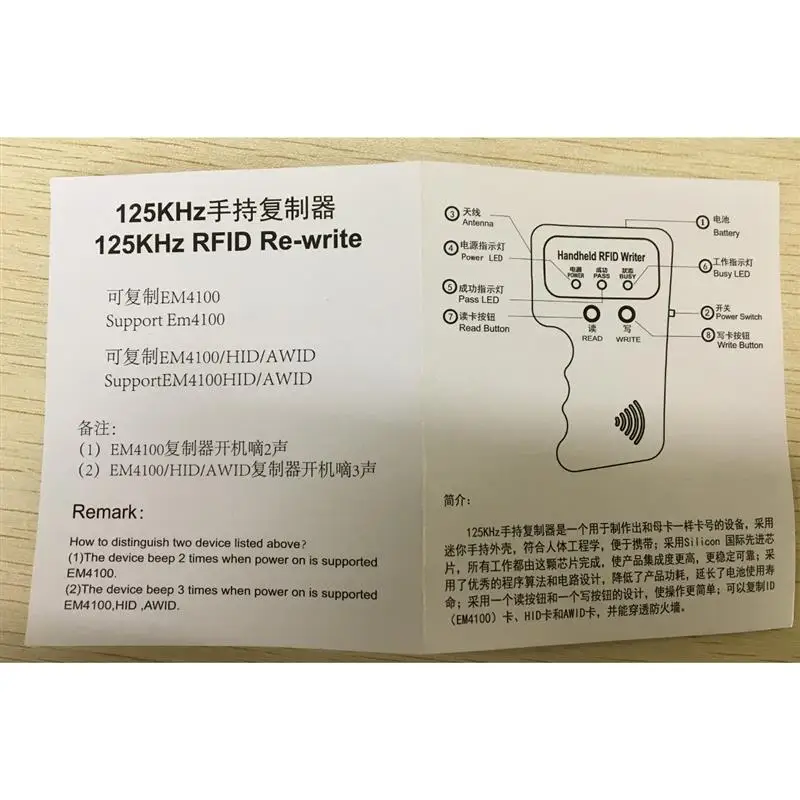 NEW Handheld RFID card reader 125KHz ID card reader device Copier Writer Programmer Reader