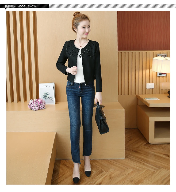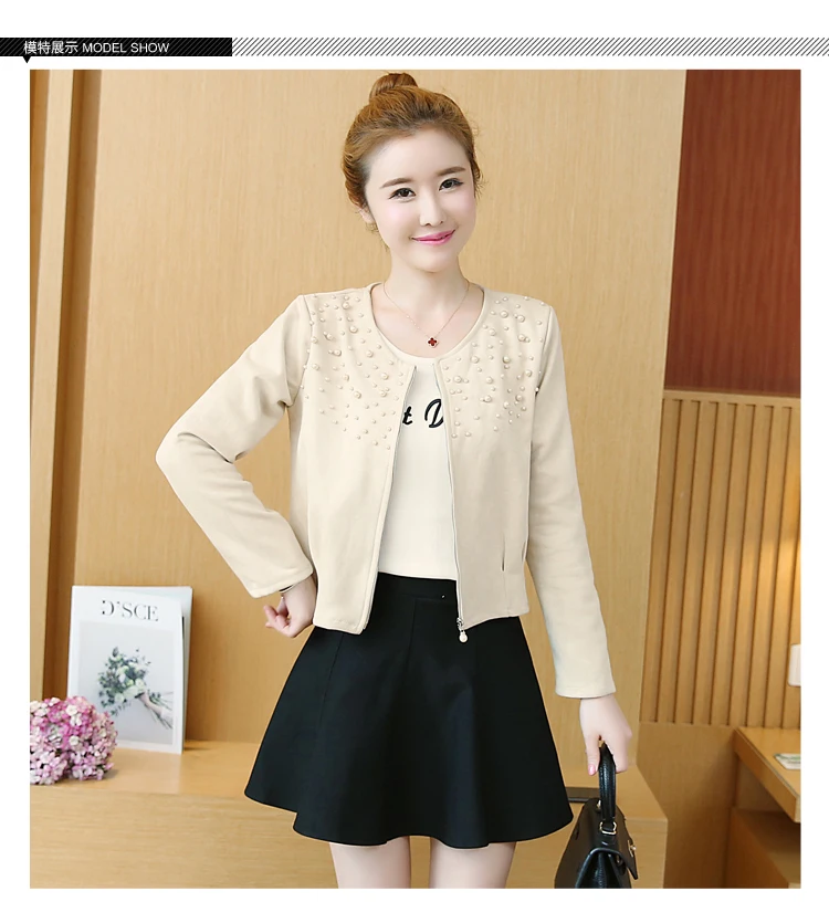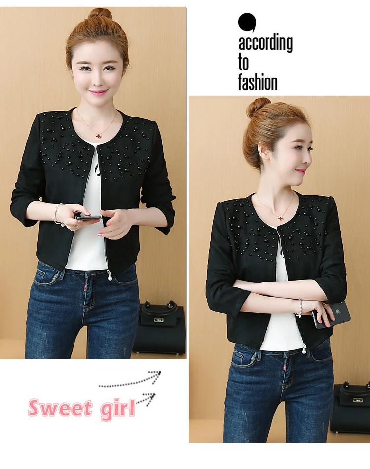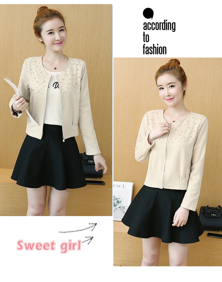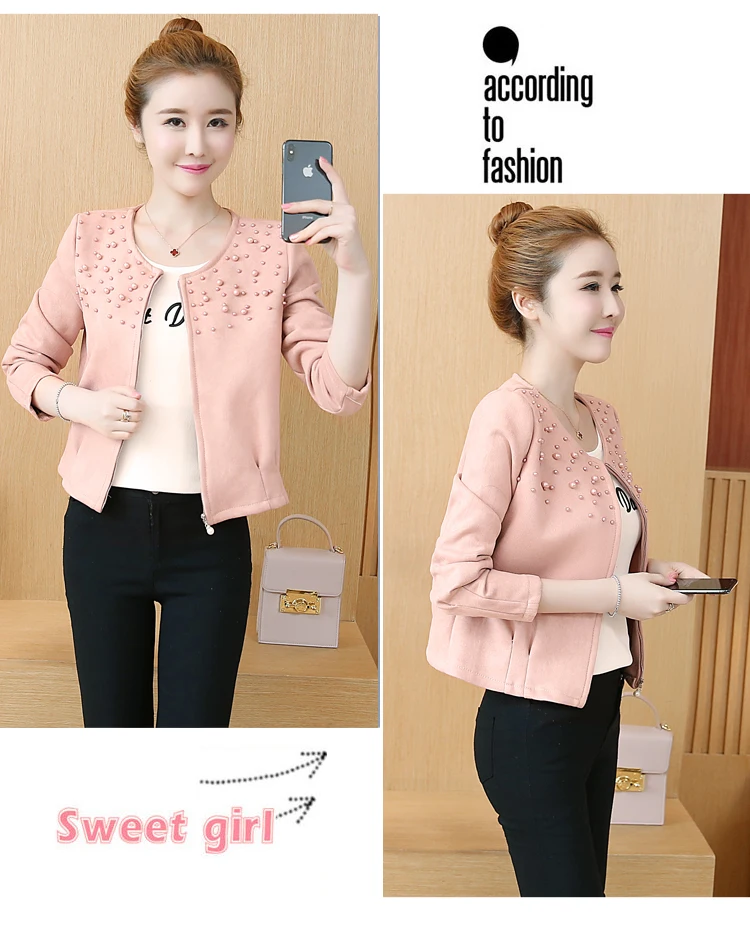 new High quality Fashion Women jackets 2018 Long Sleeve Solid Beading Zipper Cardigan jacket Women coat Small Suit Coat 0979 30