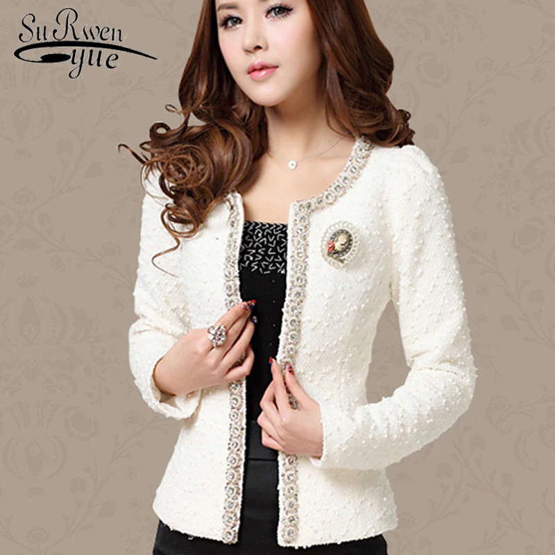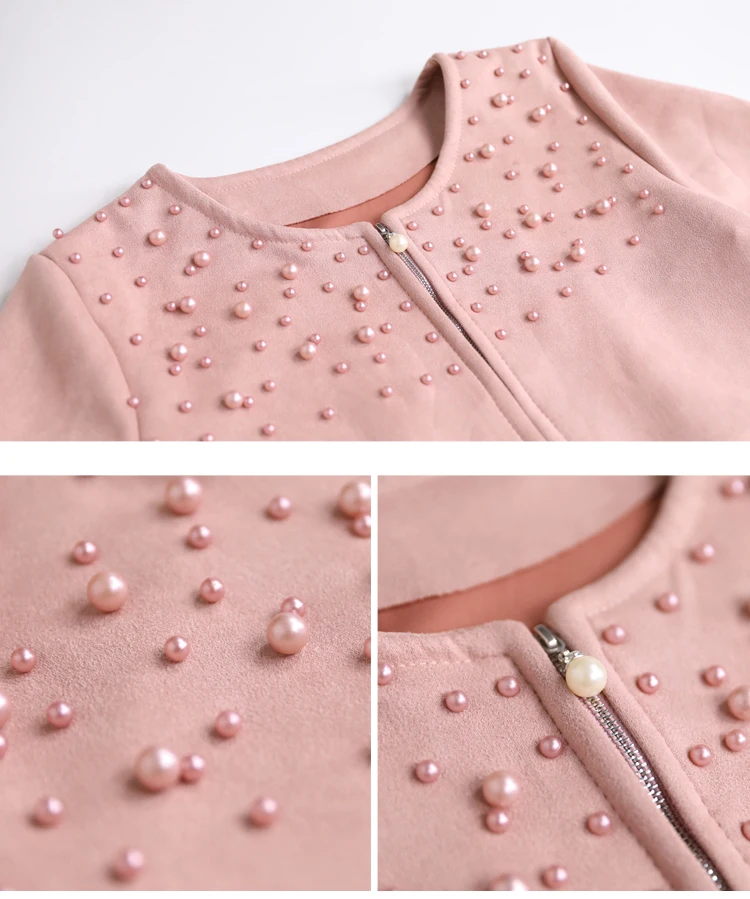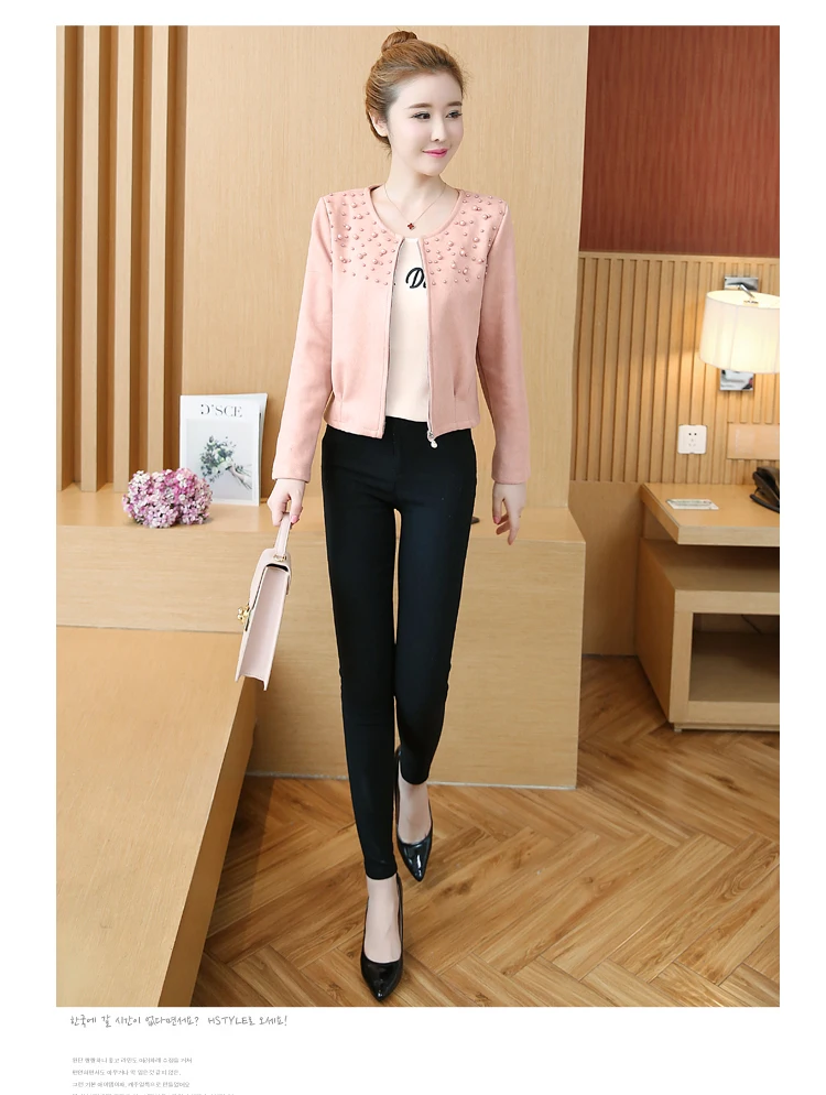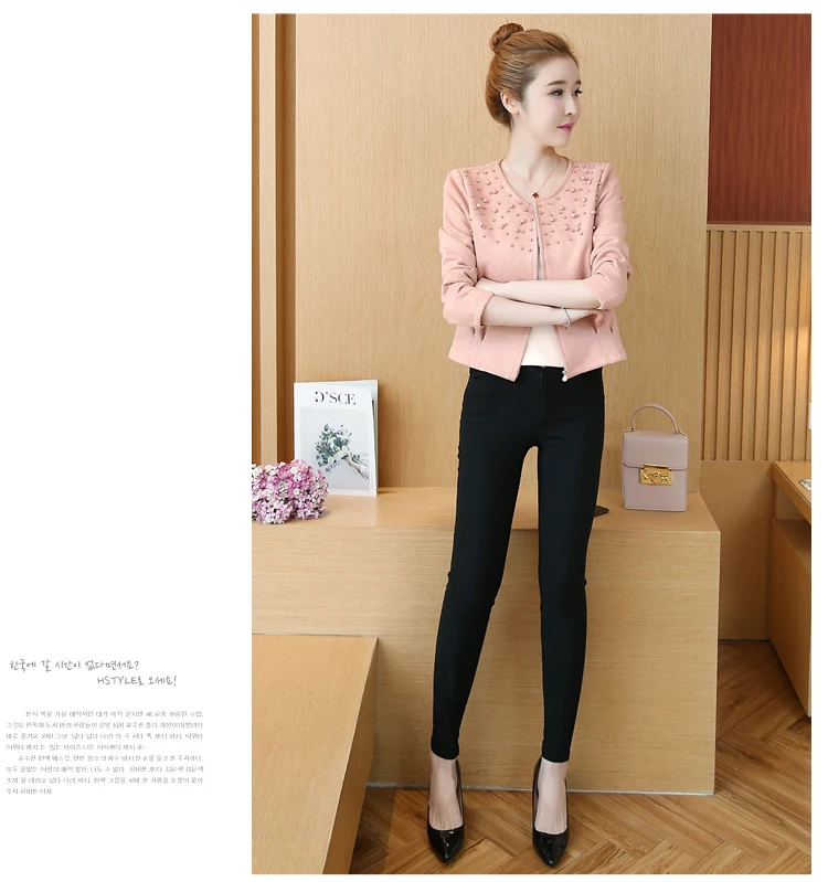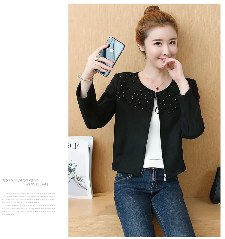 new High quality Fashion Women jackets 2018 Long Sleeve Solid Beading Zipper Cardigan jacket Women coat Small Suit Coat 0979 30