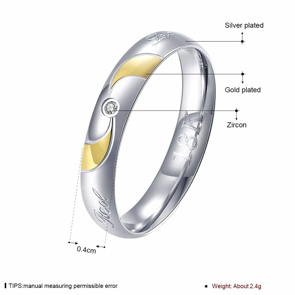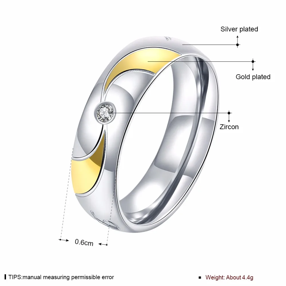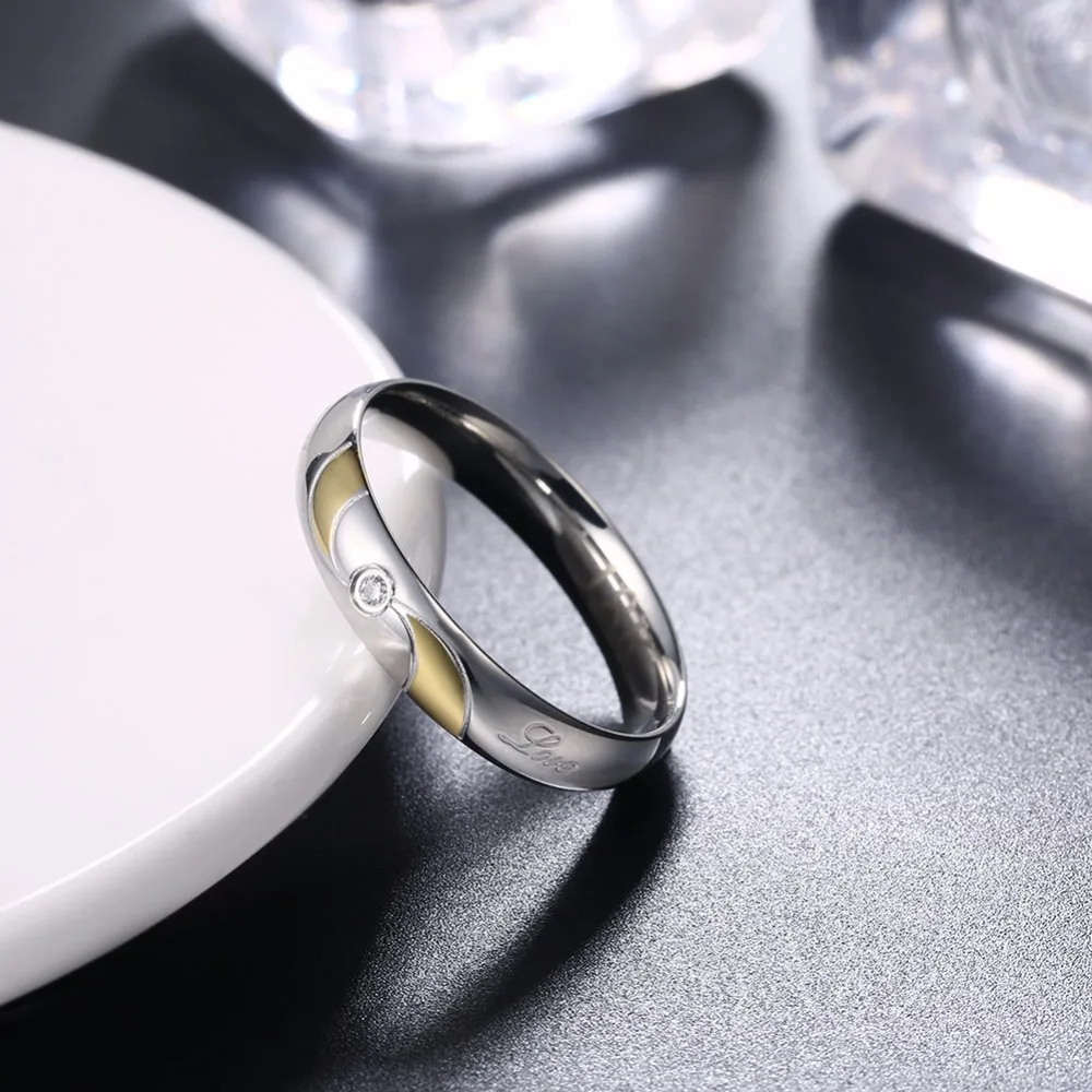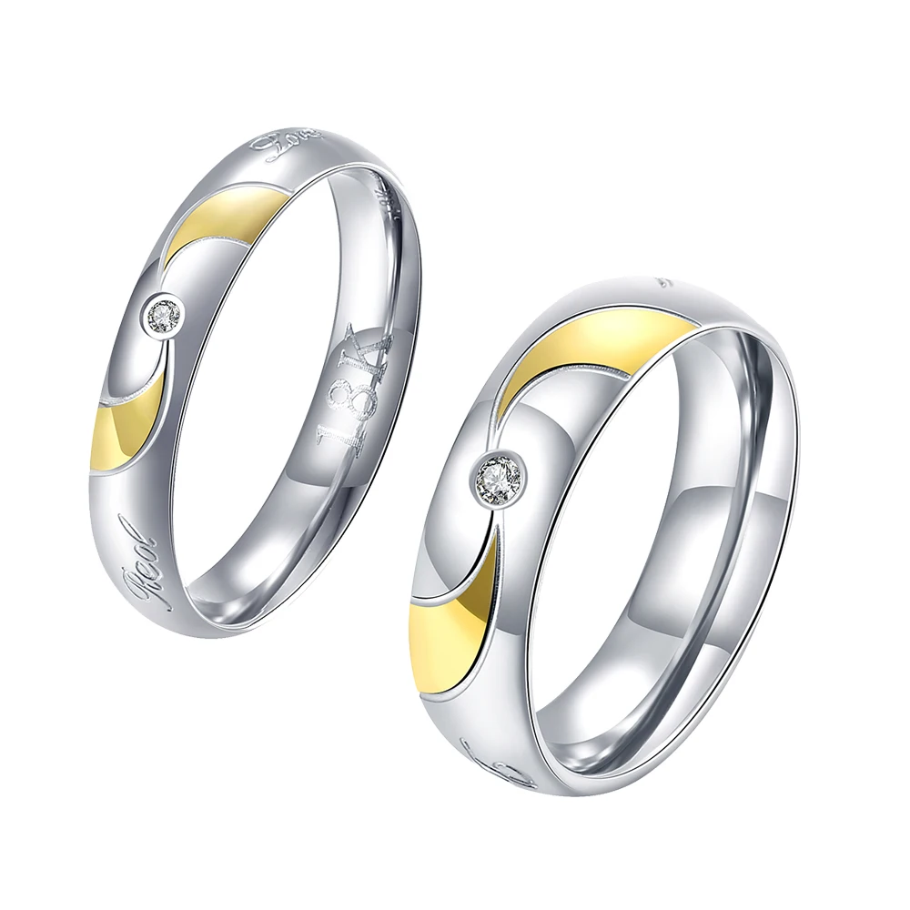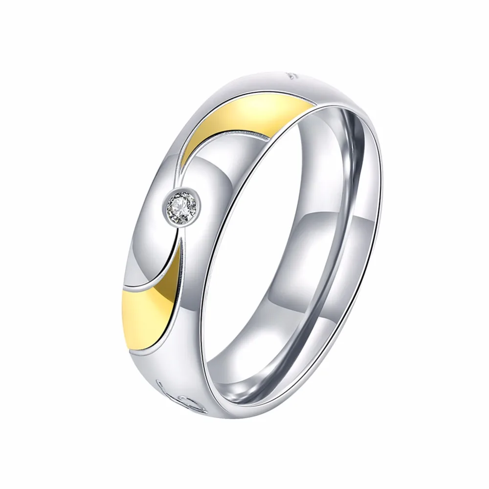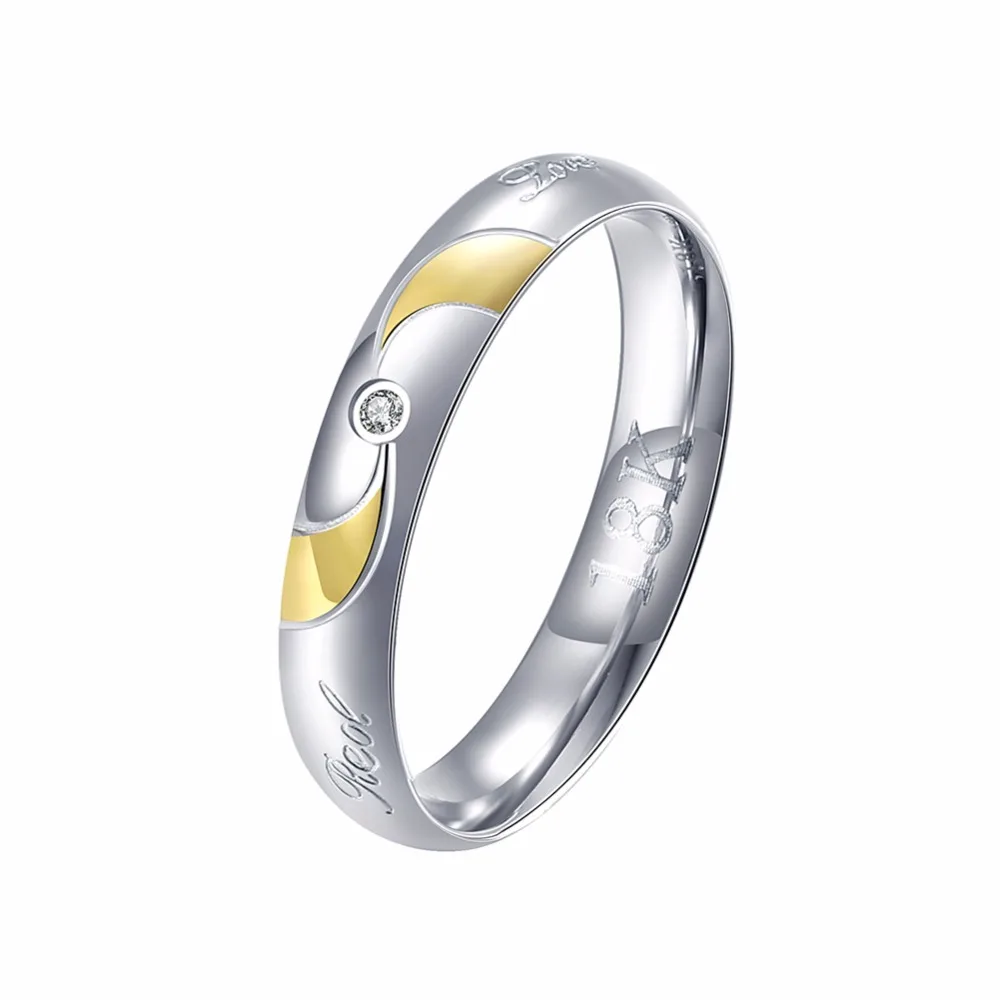 New High Quality steel golden simple round w/ stone Women men wedding Fashion jewerly