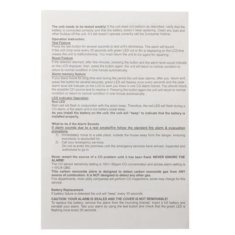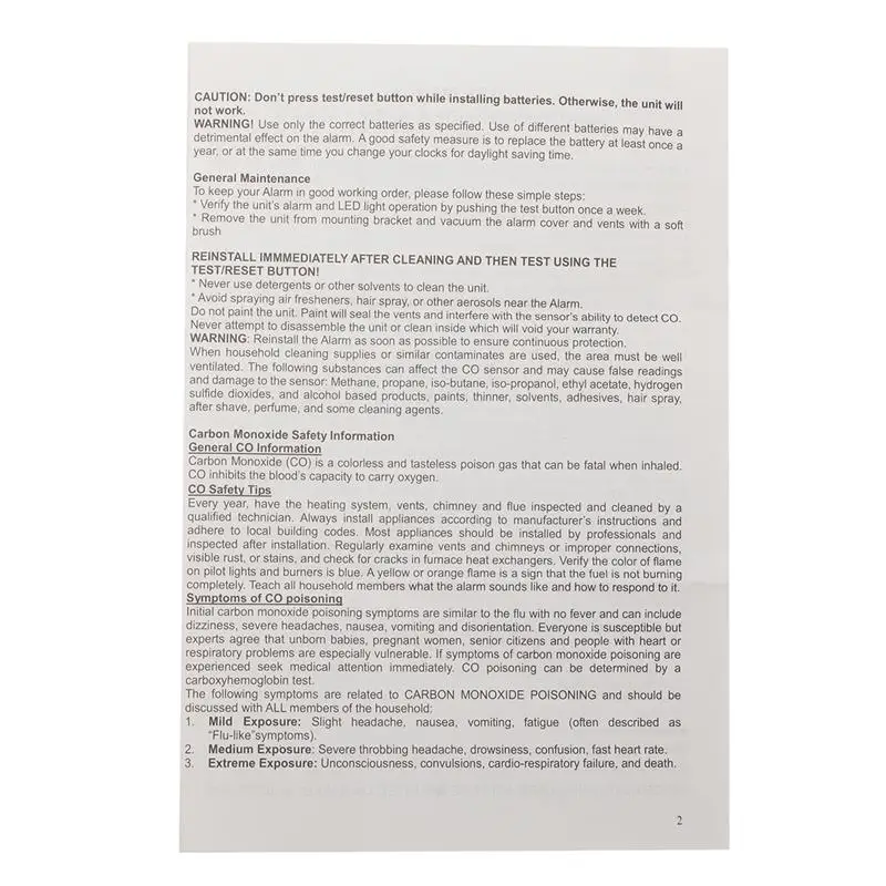 1x Carbon Monoxide Detector(battery not included)
