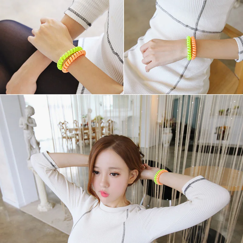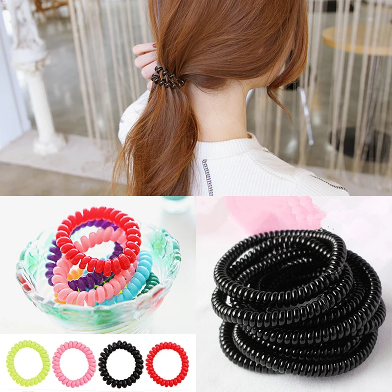 New Hot 1PC/5PCS Lady Colorful Telephone Wire Plastic Ropes Super Thin Rubber Women Hair Band Girls Hair Ropes Hair Ties