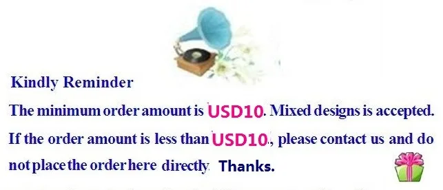 2) If your order total amount is less than $10 , we will not shipping ,because we need to bear the freight charge and lose money(can mix different items, but total amount over $10 )