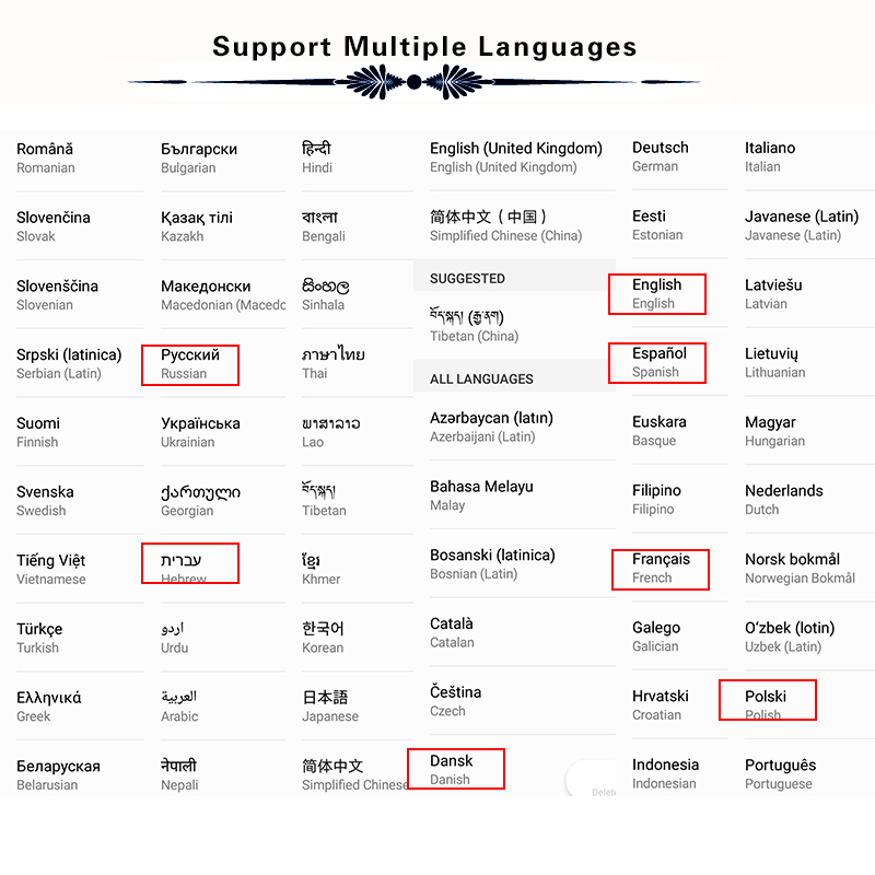 8.Multiple Languages————— YES (Russian,Spanish,English,Hebrew,Arabic,French,etc)