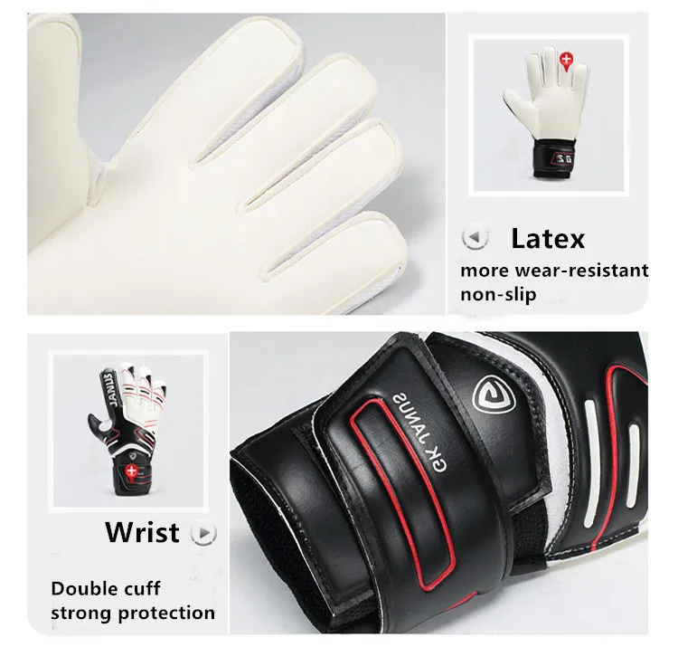 New Latex Kids Soccer Fingers Protection Goalkeeper Thick Men Soccer Training Goalkeeper Gloves Women Goalie Gloves BlackUSD 16.77/pair