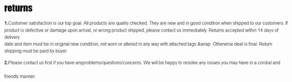 • If you did not receive the product within the guaranteed time( 45 days not including 2-5 day processing) you can request a refund or a reshipment.