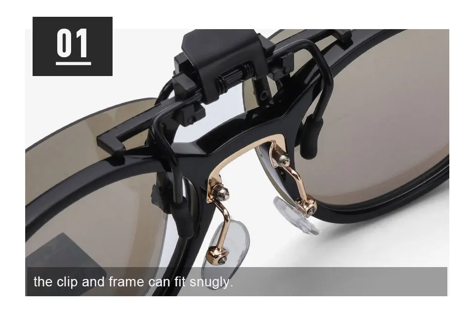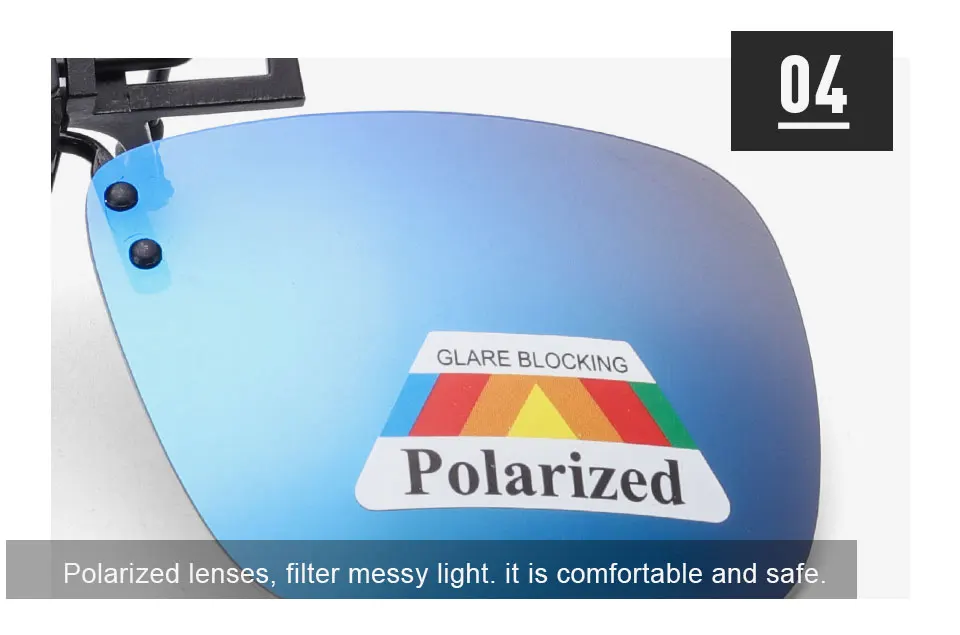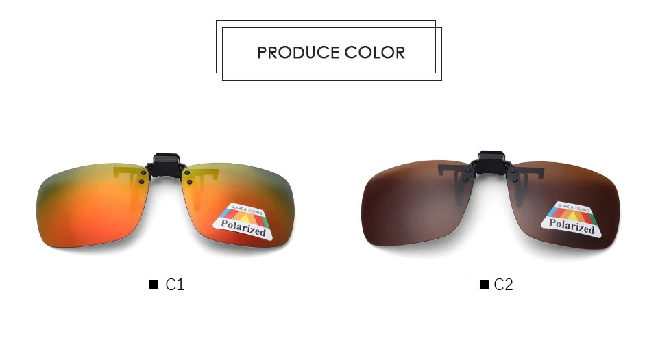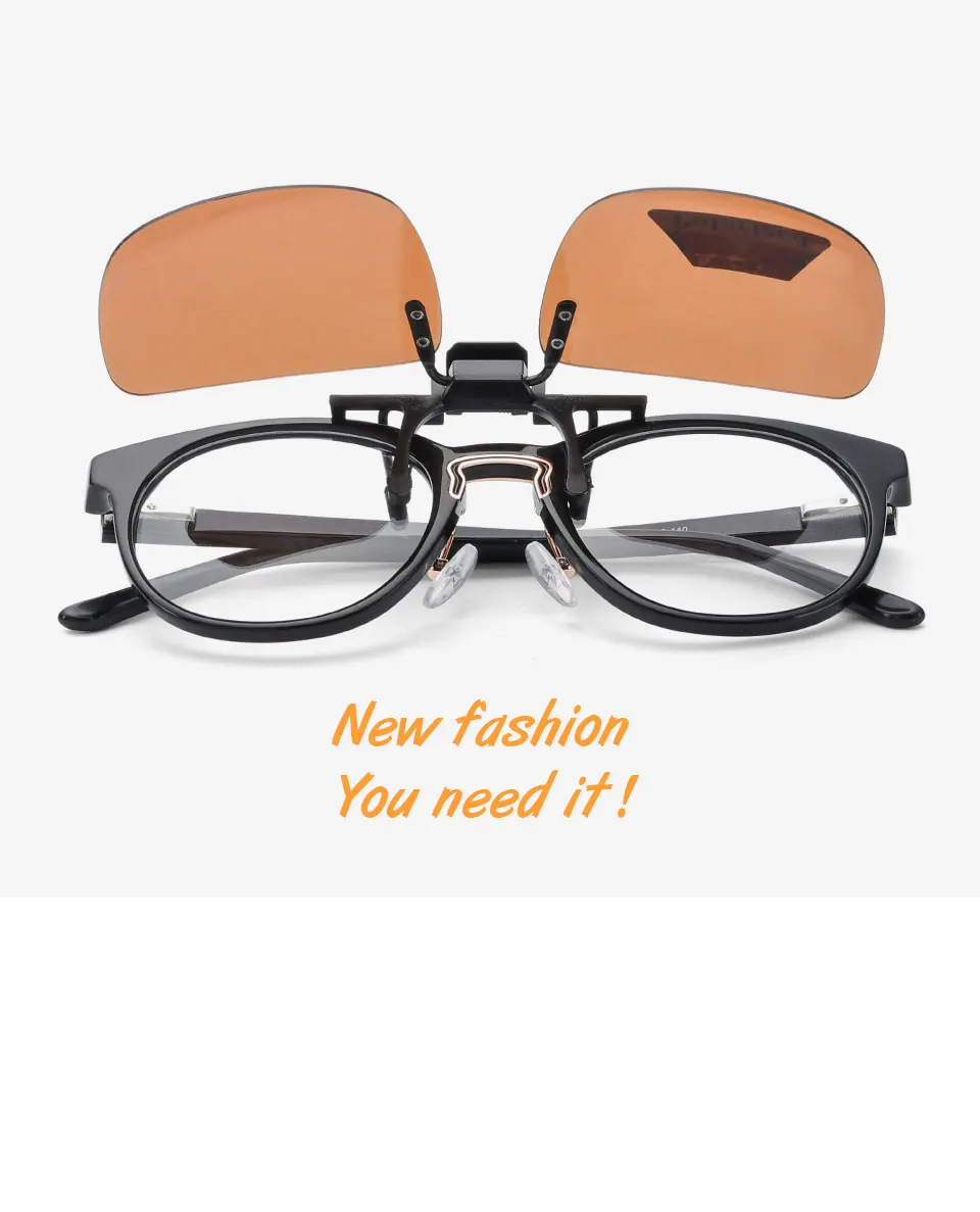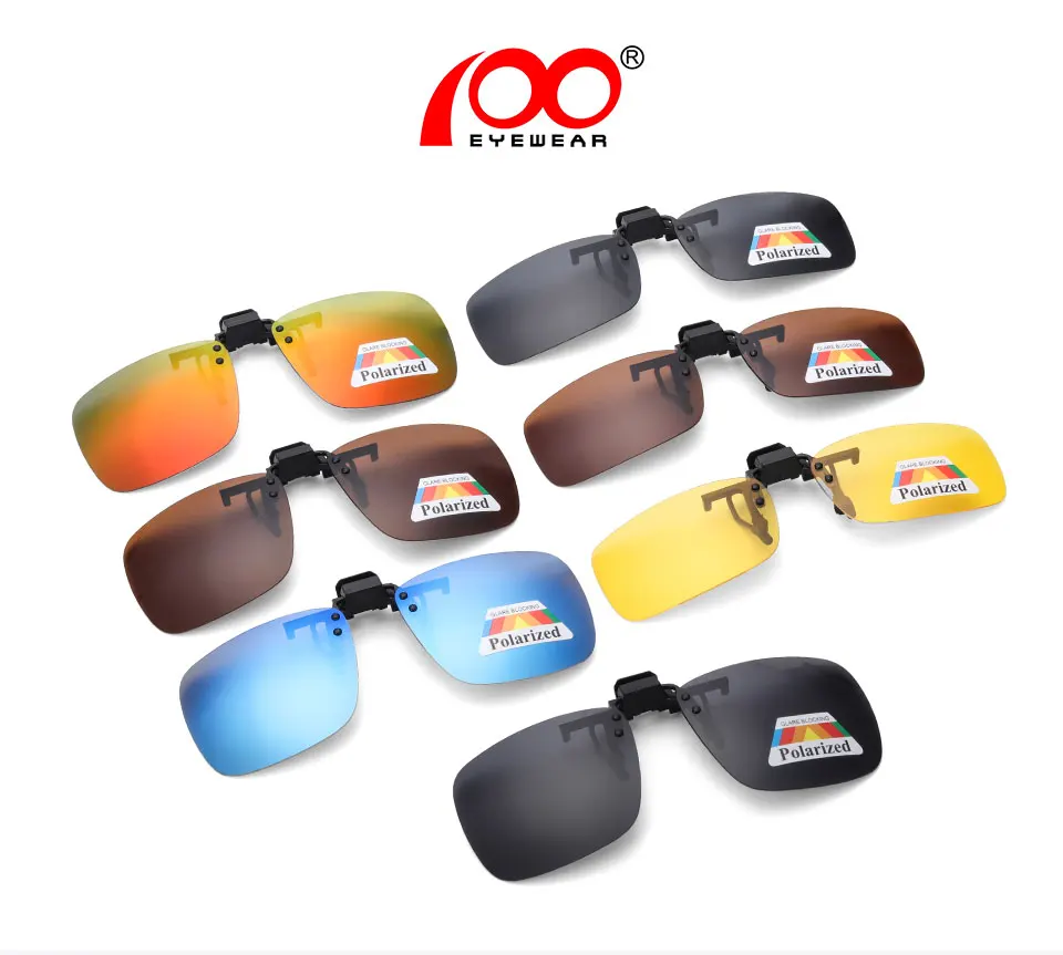 New Lens Shape Design Polarized Clip on Sunglasses for Most Prescription Optical Frame Large Small Size Blue Orange Sun Glasses