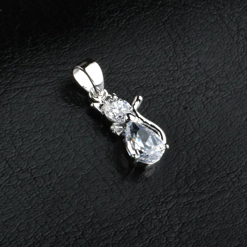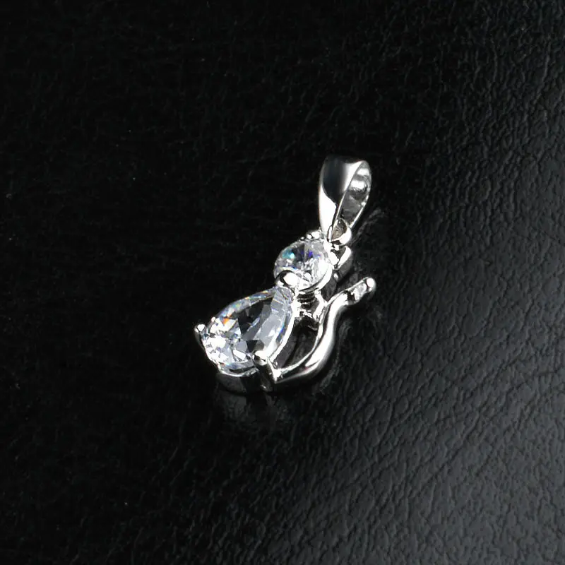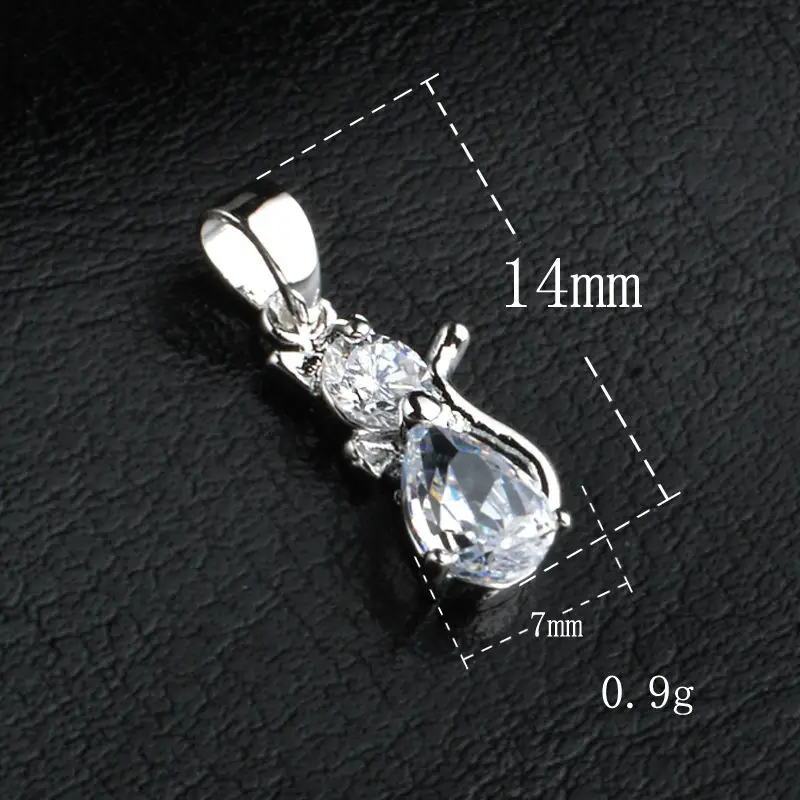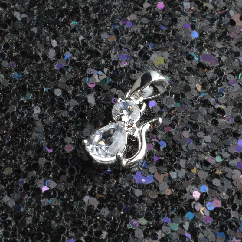New Luxury Square Zircon Jewelry Silver Plated Cute Cat Pendant With Necklace Wedding/Party Necklace Pendants Jewelry for Women