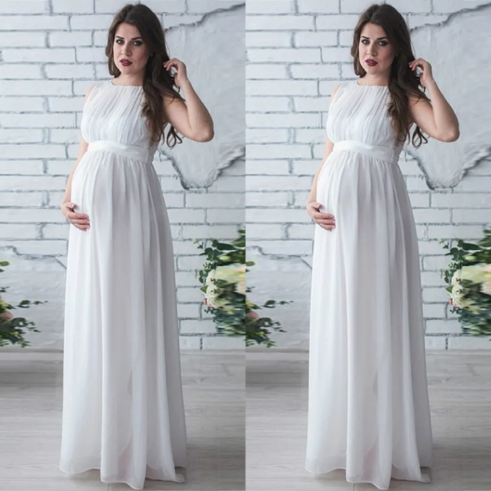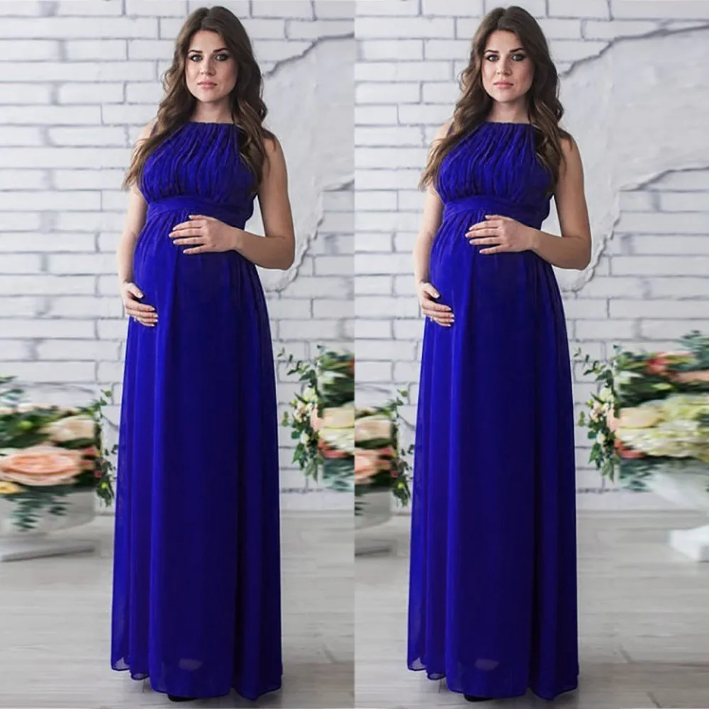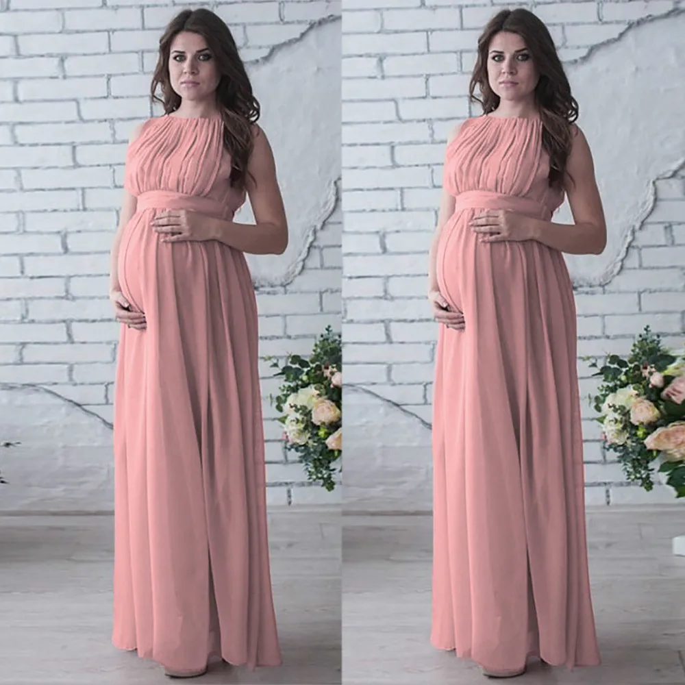 New Maternity Clothing Women Pregnant Dress Solid Color Drape Photography Props Casual Nursing Elegant Long Dress Summer 2018
