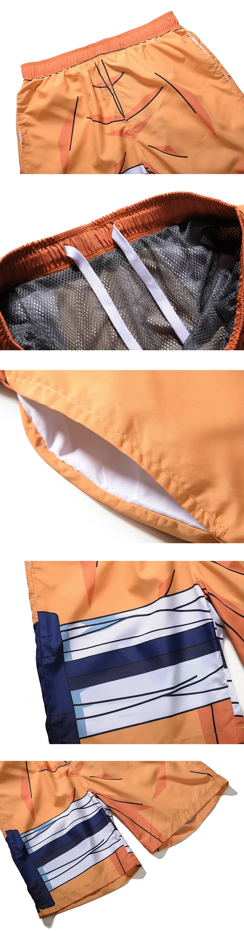 New Men Board Shorts Uzumaki Naruto 3D Printed Beach Shorts Quick Drying Belt Bottoms S to XXL 100% Polyester Famous Brand