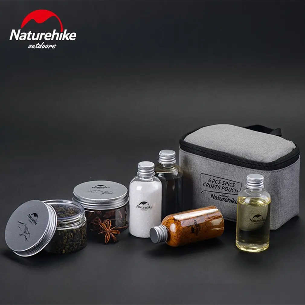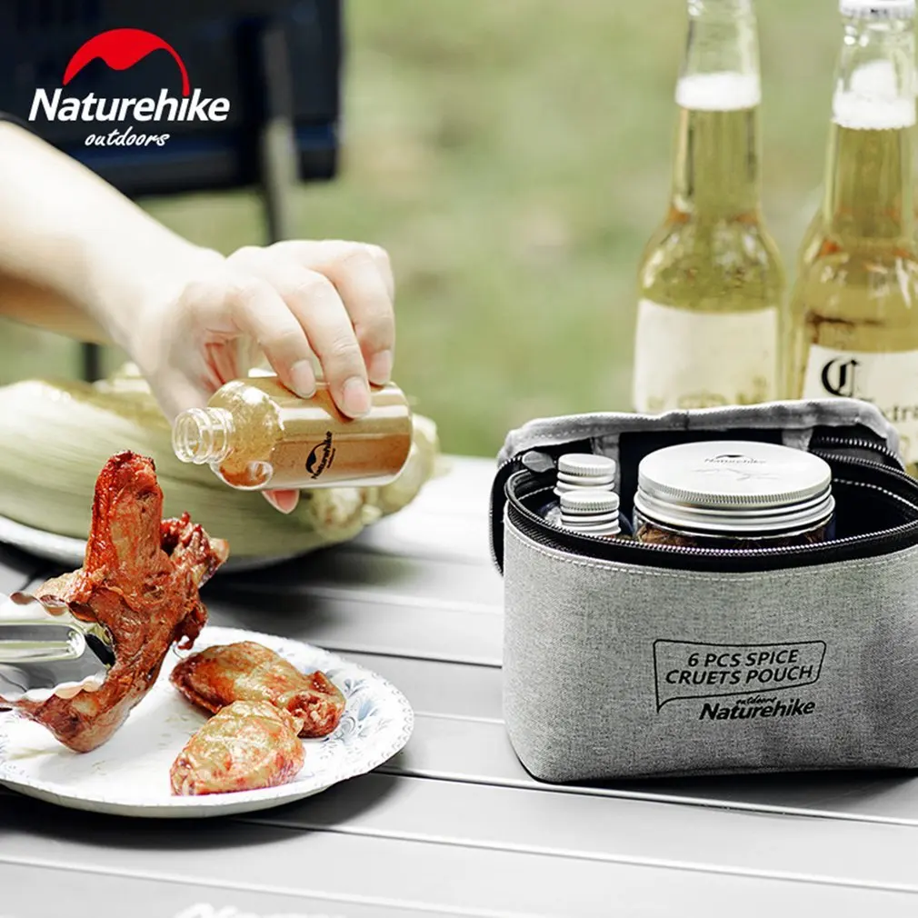 New Naturehike 6pcs Spice Cruets Pouch Seasoning Jar Case Condiment Bottles Set Portable Organize Bag Camping Barbecue Picnic
