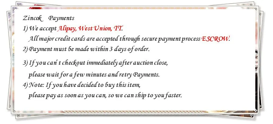 We are not responsible for any custom fees once the items have shipped. By purchasing our products, you consent that one or more packages may be shipped to you and may get custom fees when they arrive in your country.