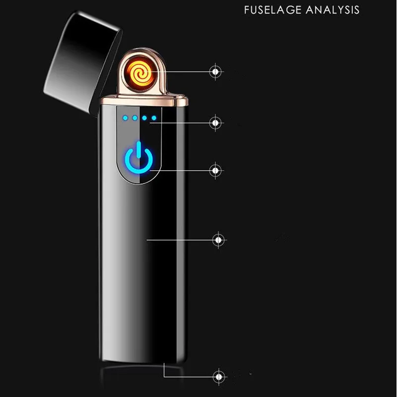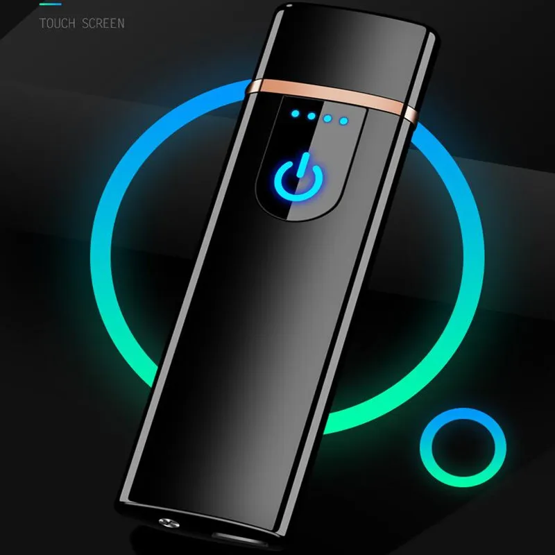 New Novelty USB Windproof flameless cigar Electronic charging Cigarette lighter Touch-senstive Switch Tungsten Turbo Lighters