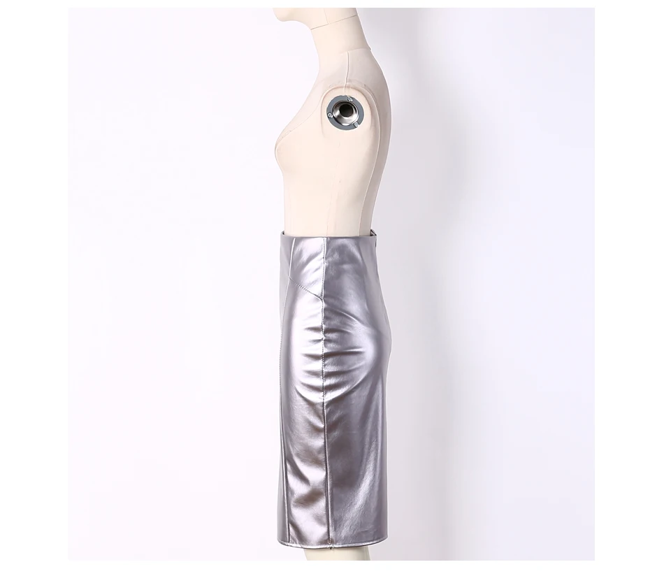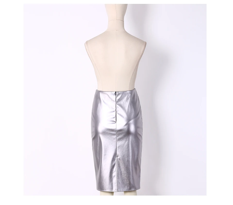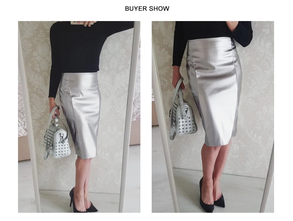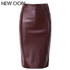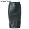 NEW OOPS Women Faux Leather slim High Waist Skirts 2018 Casual Tube Wrap Bodycon PU Pencil Skirts Midi Saias Femininos A1702031