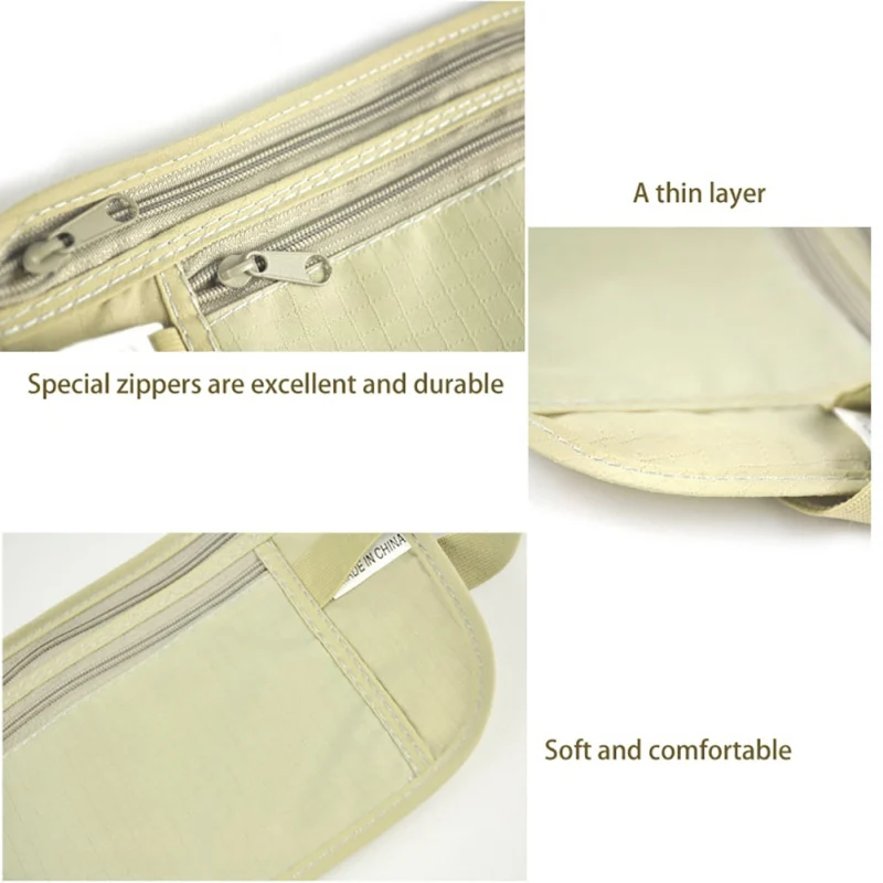 Travel Pouch Zippered Waist Compact Security Money Waist Belt Bag