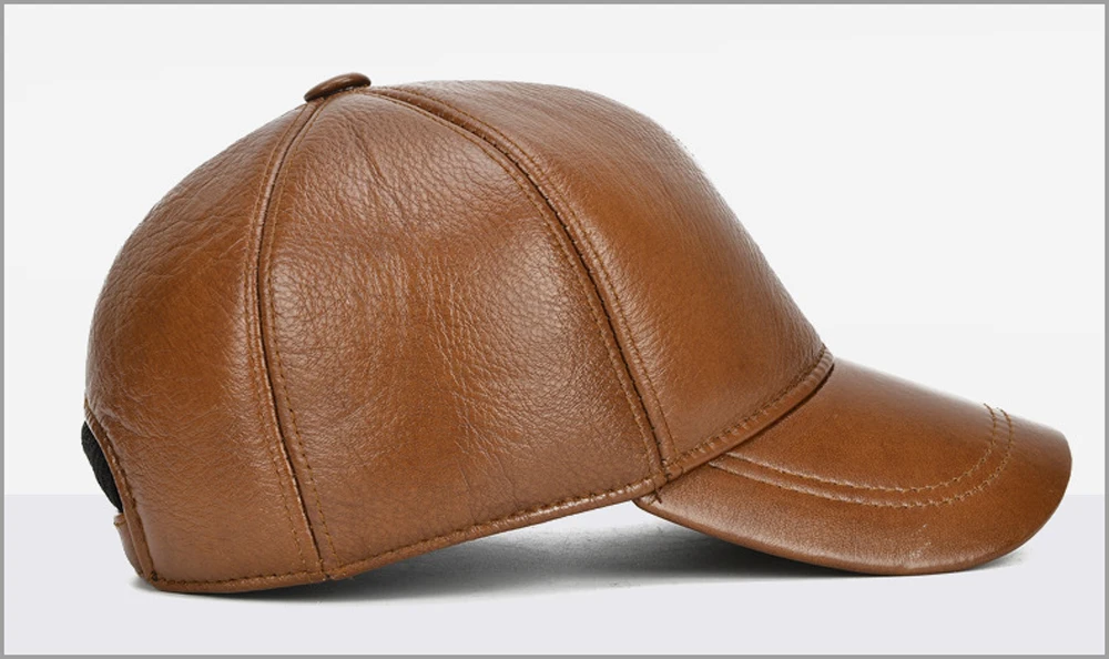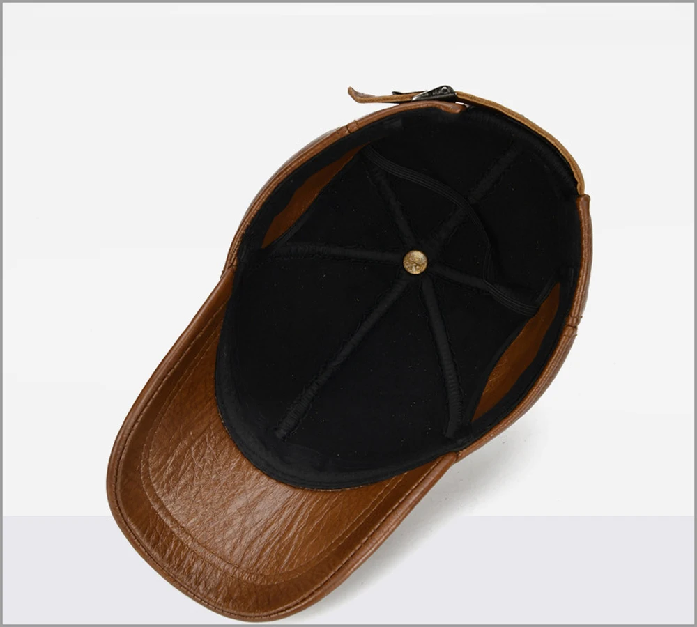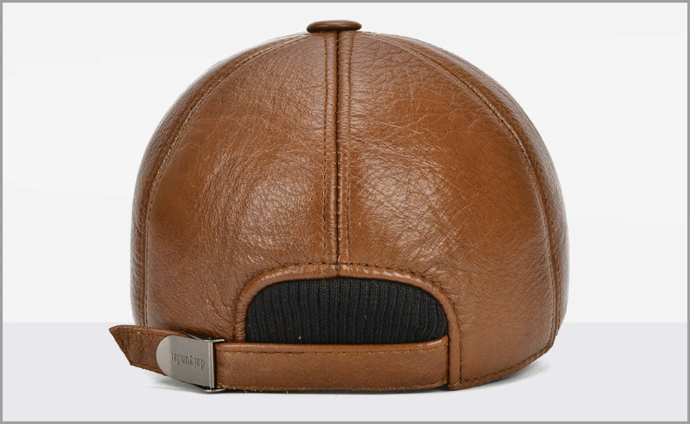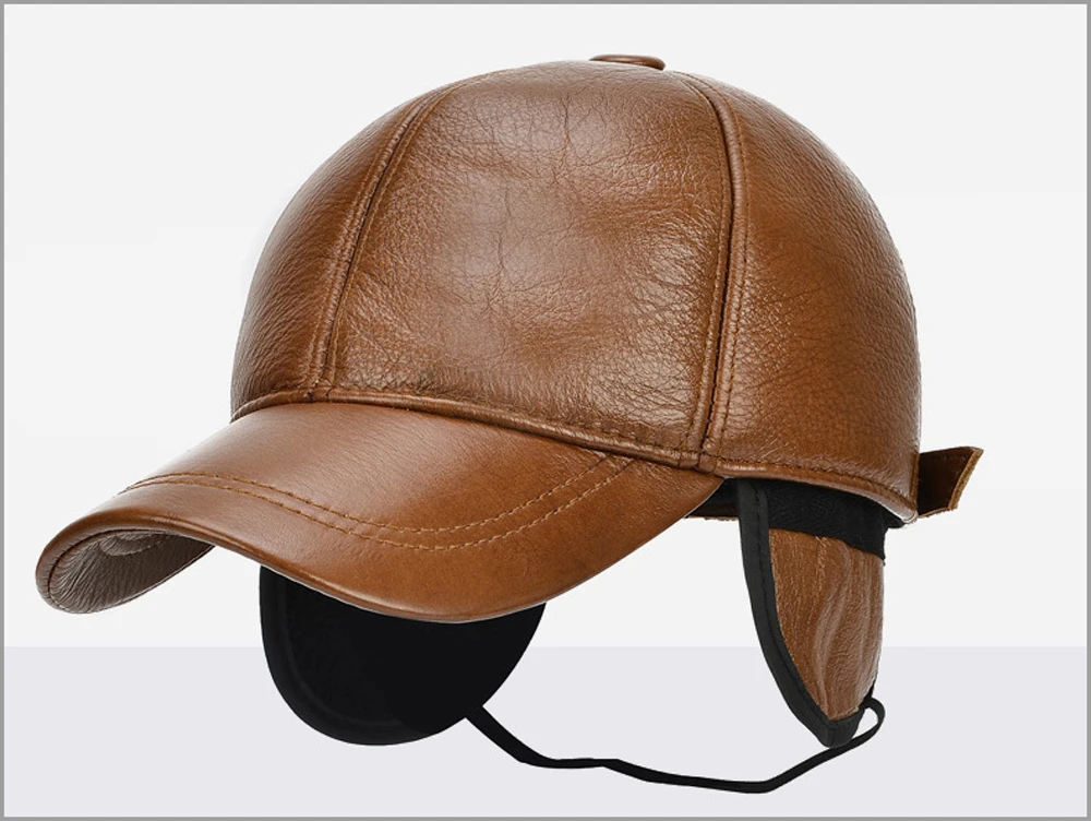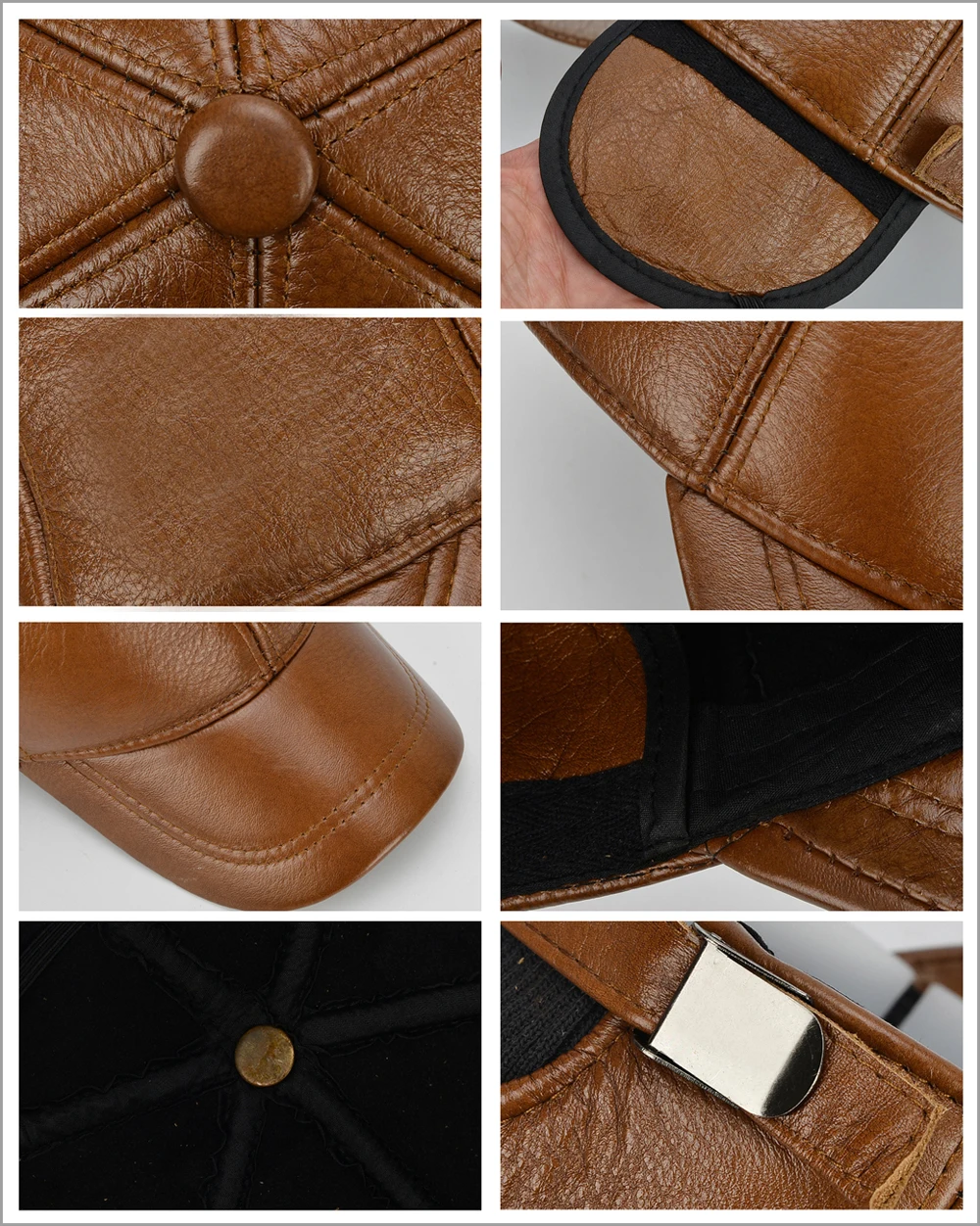 New Outdoor Casual Men Real Cowhide Leather Earflap Caps Male 100% Real Cow Leather Hats Fall Winter Real Leather Baseball Cap