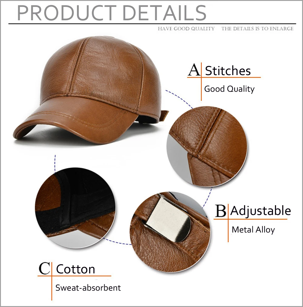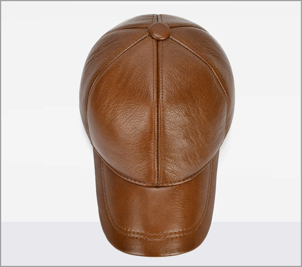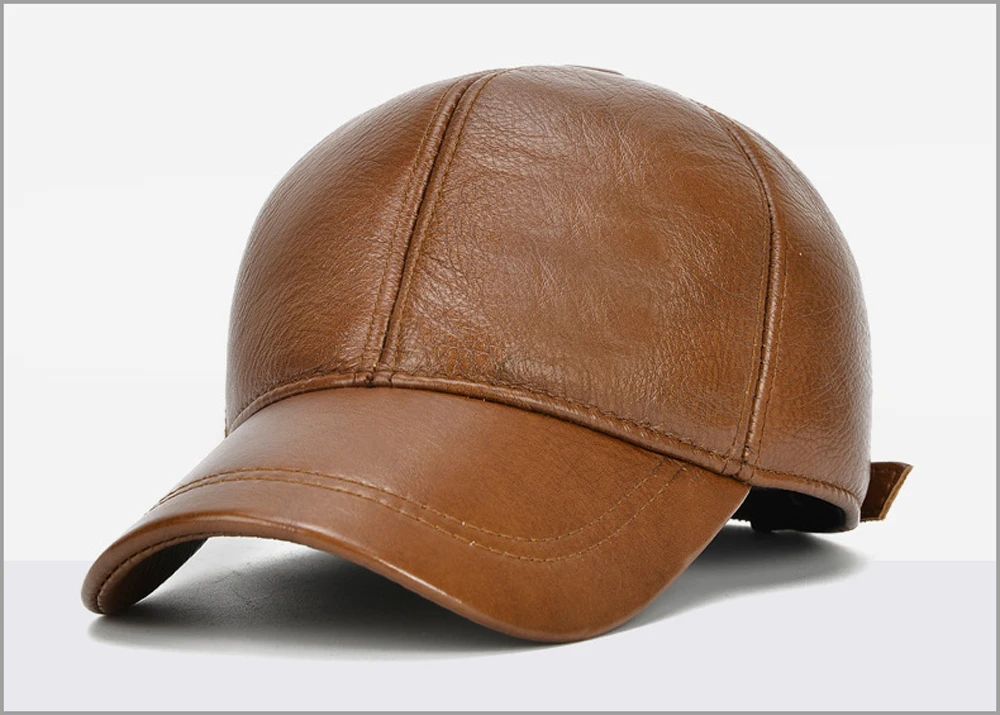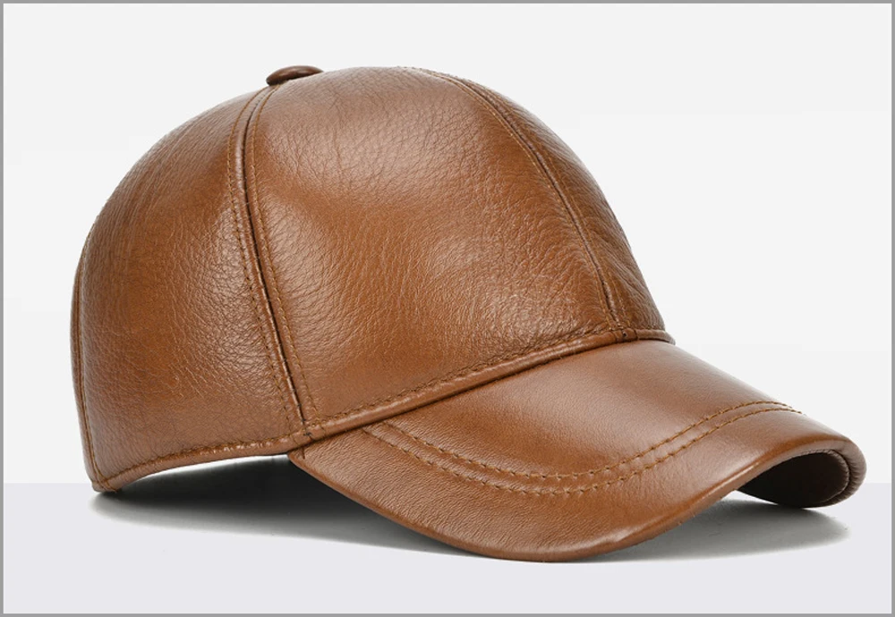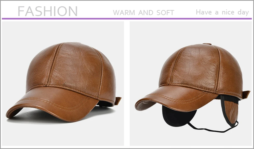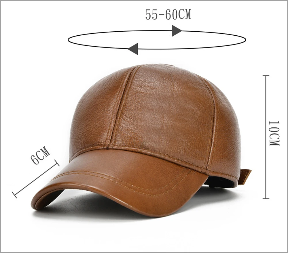 New Outdoor Casual Men Real Cowhide Leather Earflap Caps Male 100% Real Cow Leather Hats Fall Winter Real Leather Baseball Cap