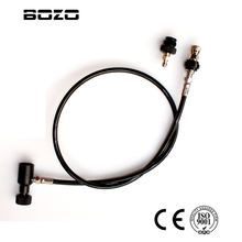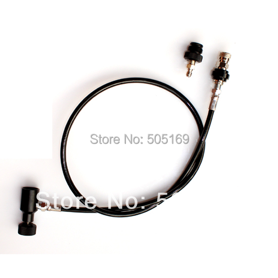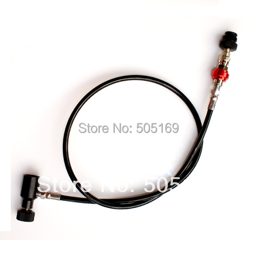 It can be used in not more than 3000 psi pressure rate to screw into CO2 or compressed air /N2 tank. Standards with 1/8 NPT Thread with 24″ (unstretched).