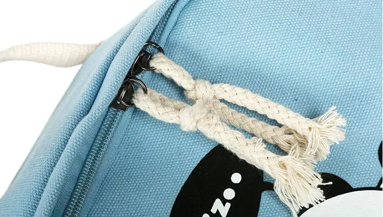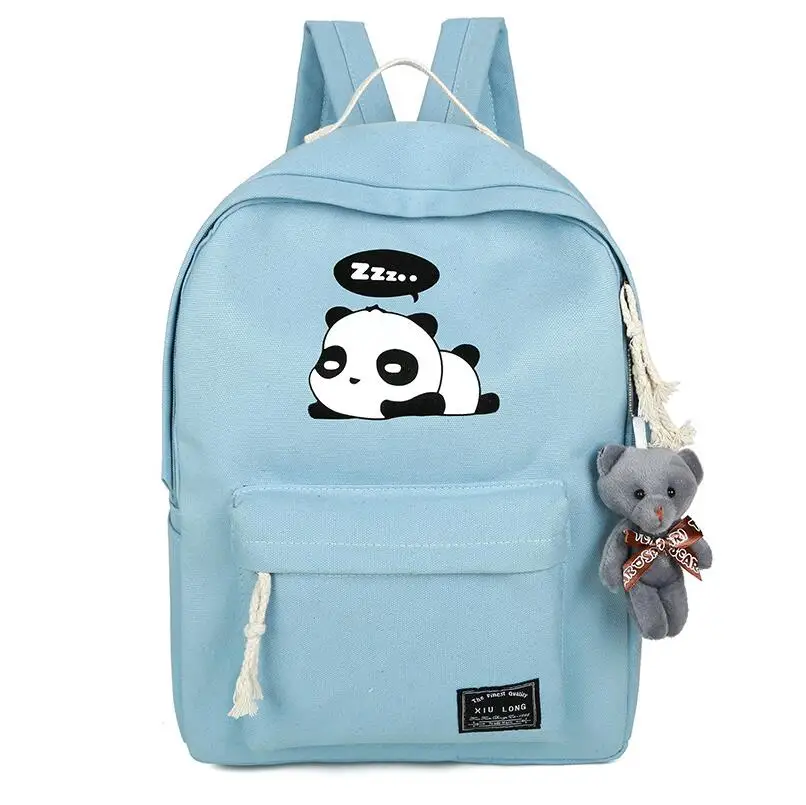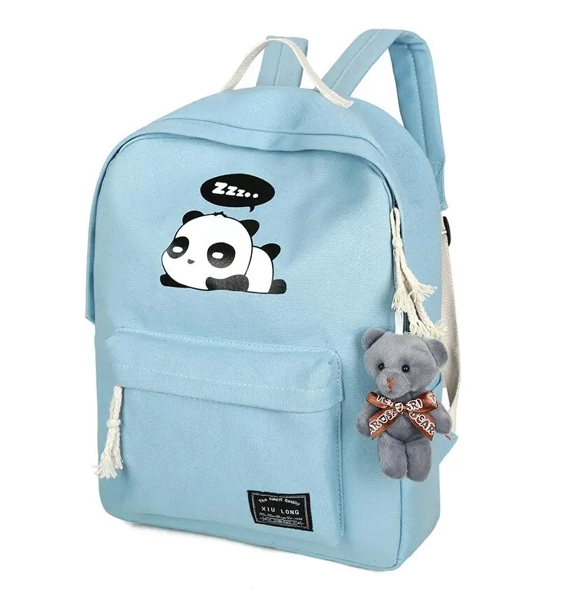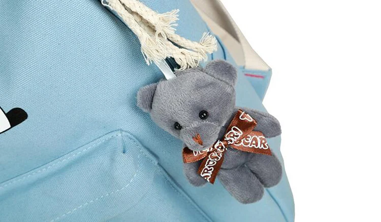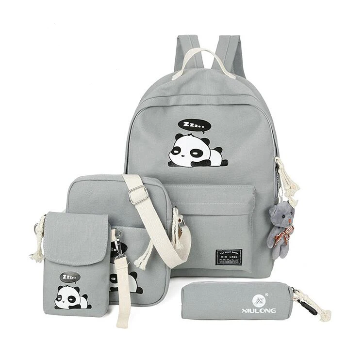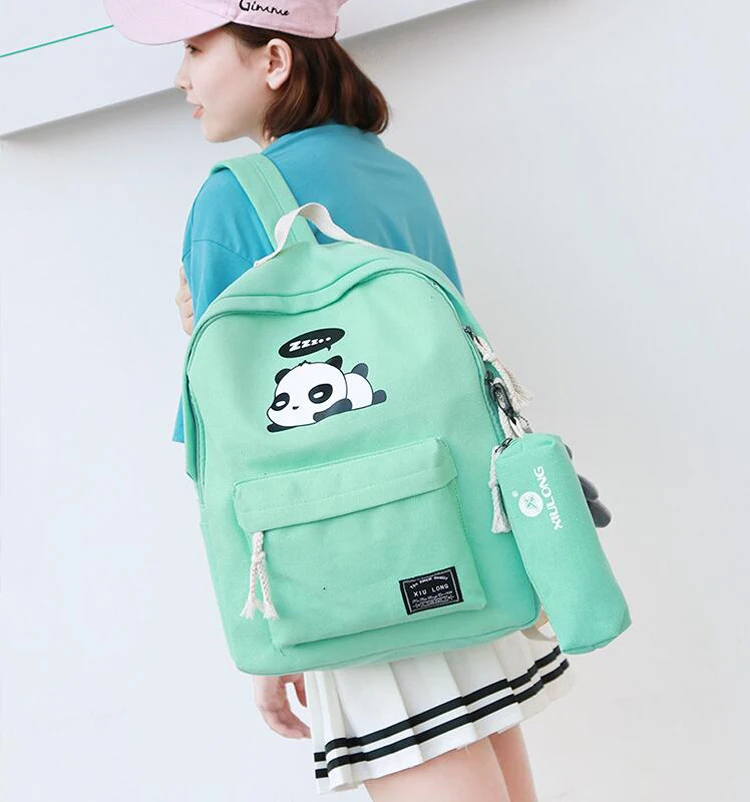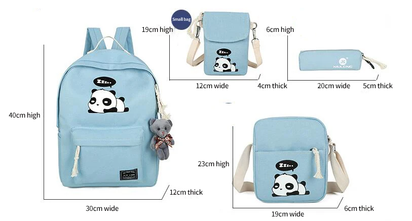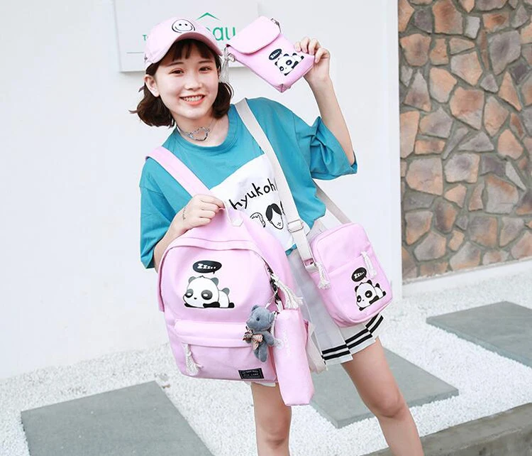 New Panda School Blue Bags For Teenage Girls Canvas Backpack Girls 4pcs/set Knapsacks For Teens Pencil Holder Student Bookbag