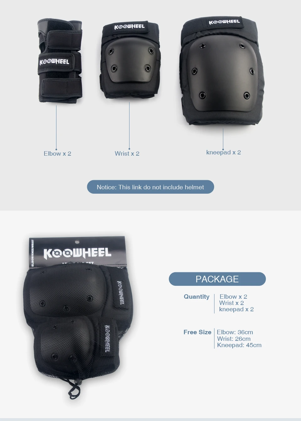 Package 2: Elbow x 2;Wrist x 2;Kneepad x 2;Helmet x 1