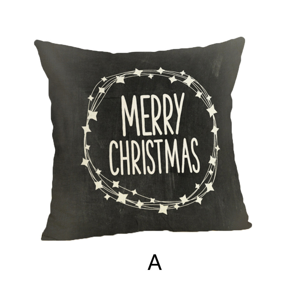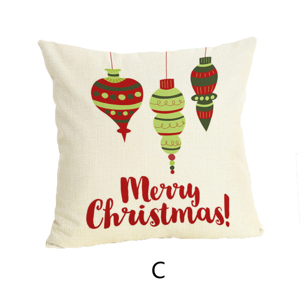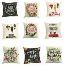 Happy Christmas Pillow Cases Linen Sofa Cushion Cover Home Decor Pillow Case