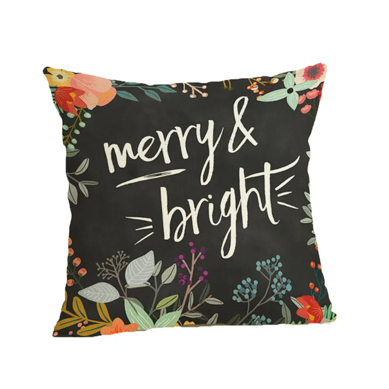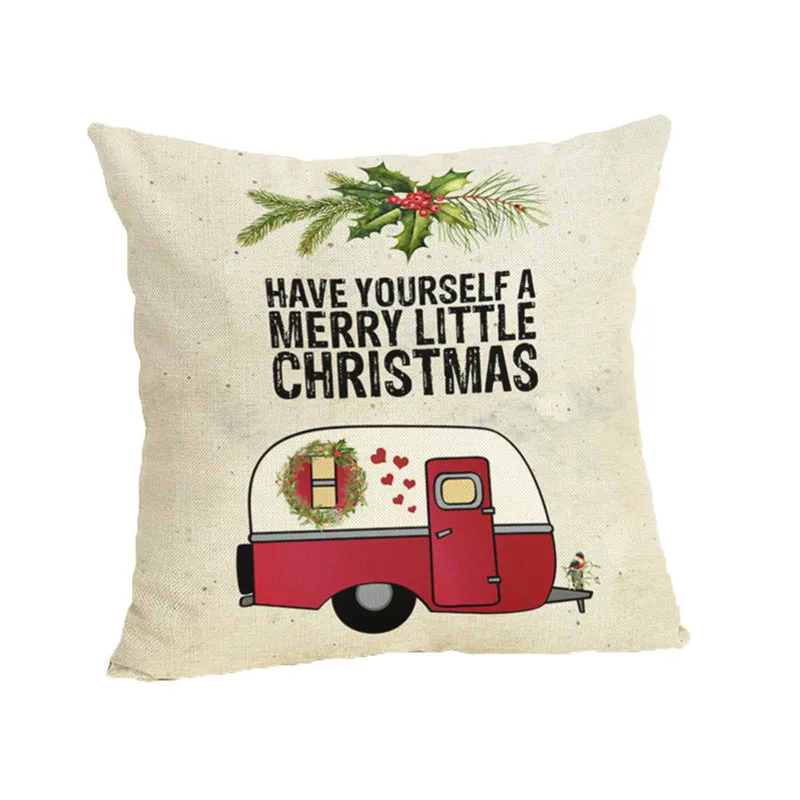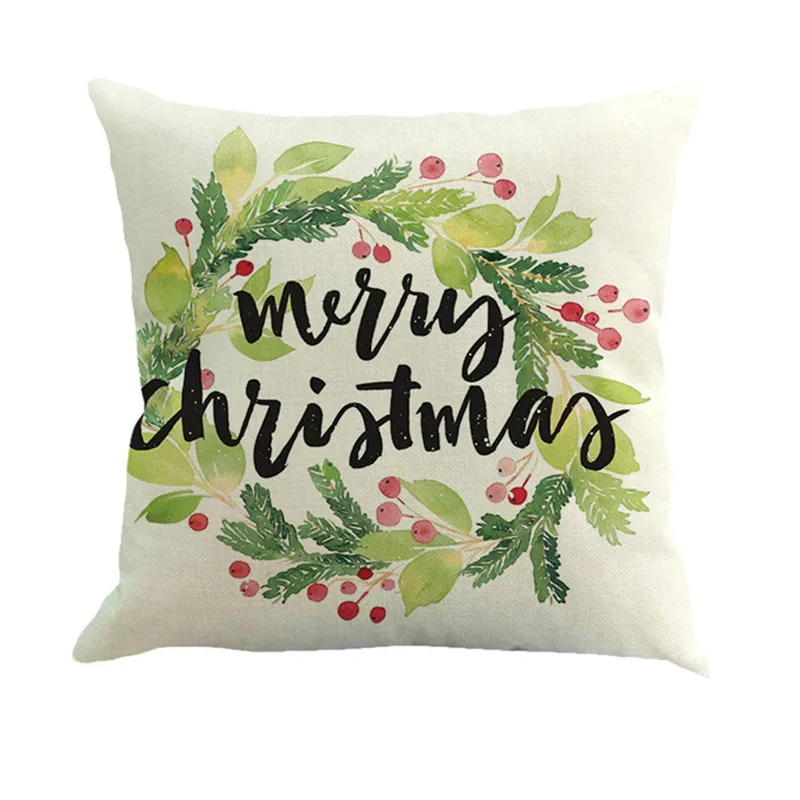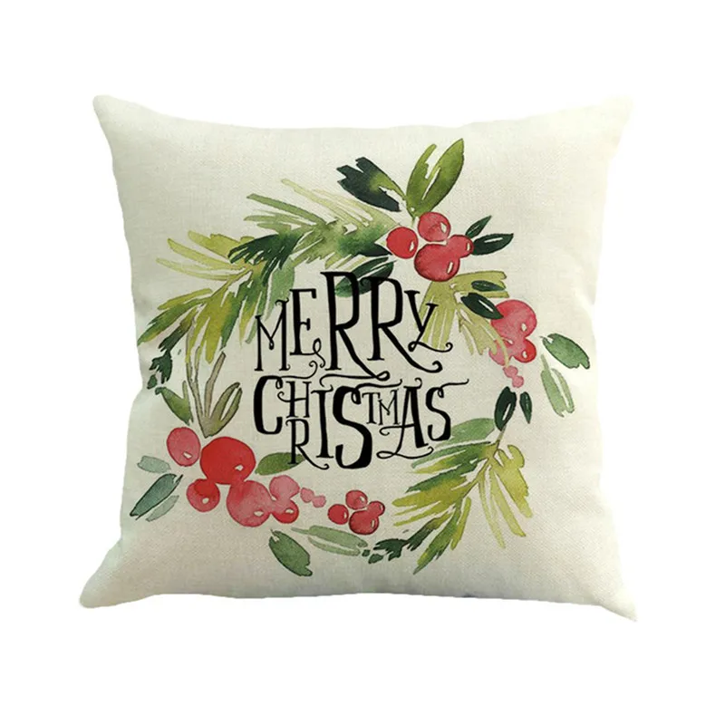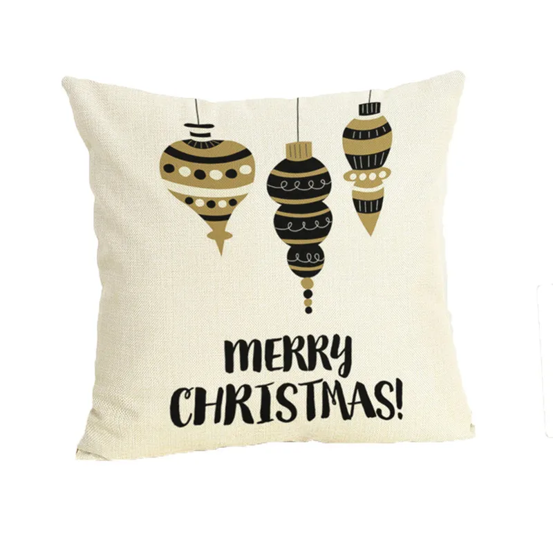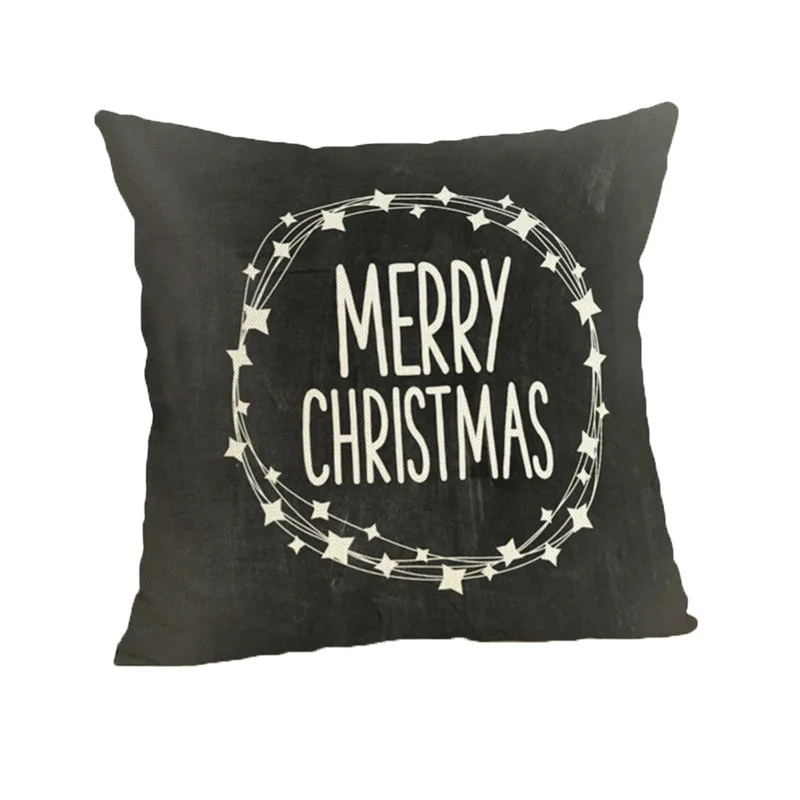 Happy Christmas Pillow Cases Linen Sofa Cushion Cover Home Decor Pillow Case