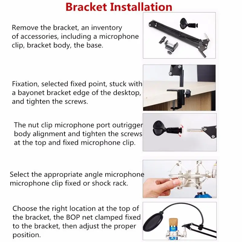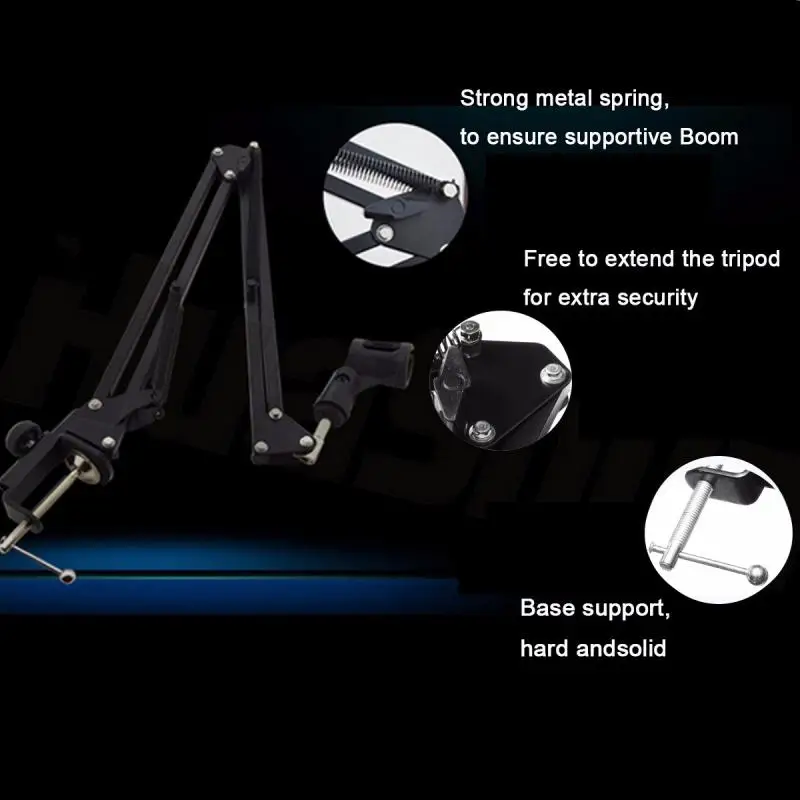 New Recording Microphone Holder Stand Clip Mic Adjustable Suspension Boom Table Bracket With