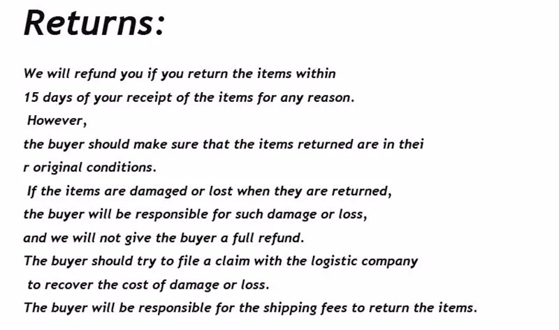 Your satisfaction is our #1 priority. Therefore, you can request a refund or reshipment for ordered products if: