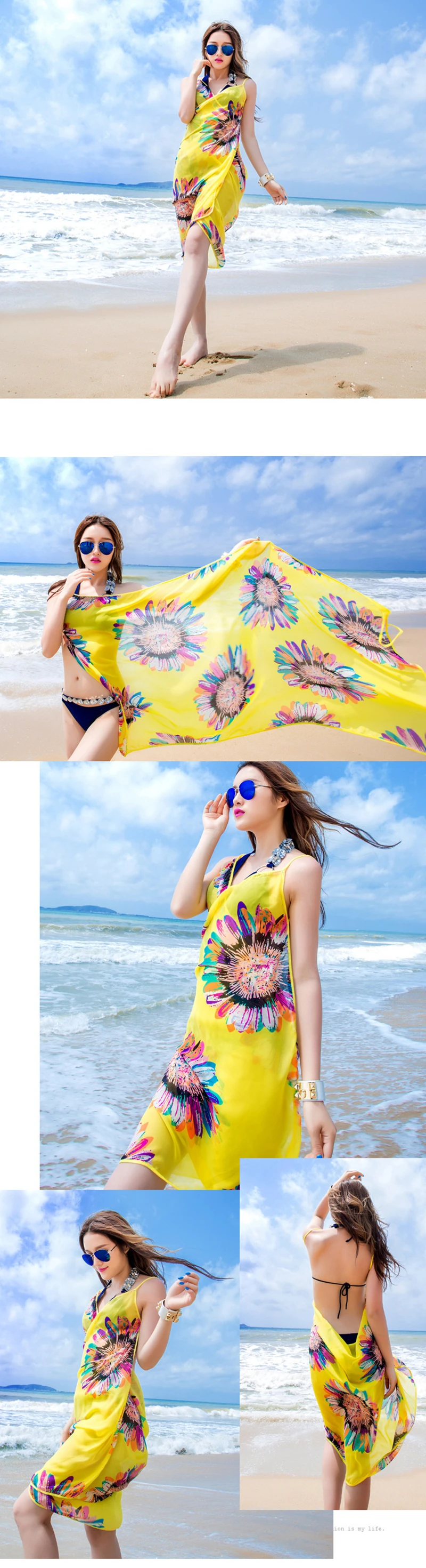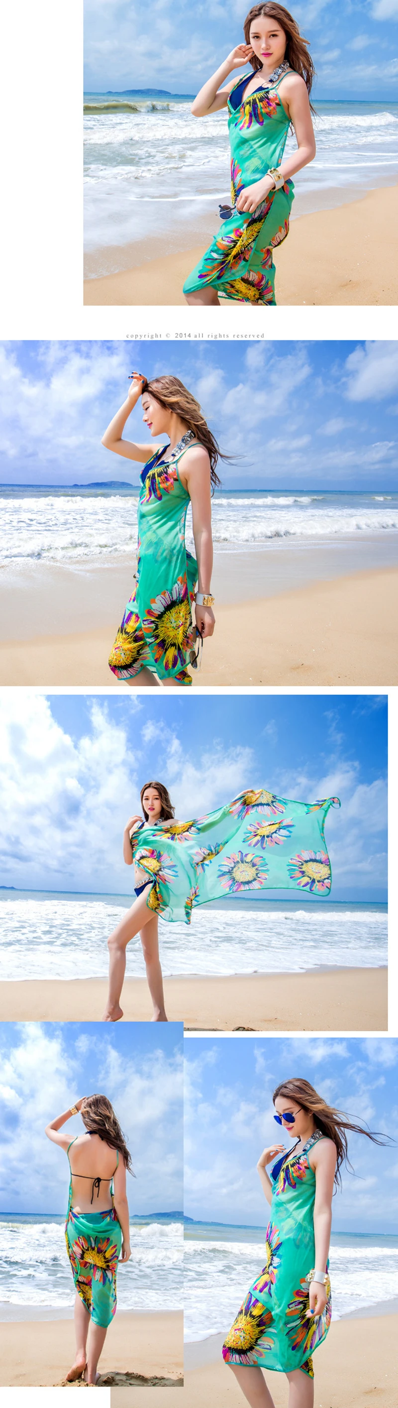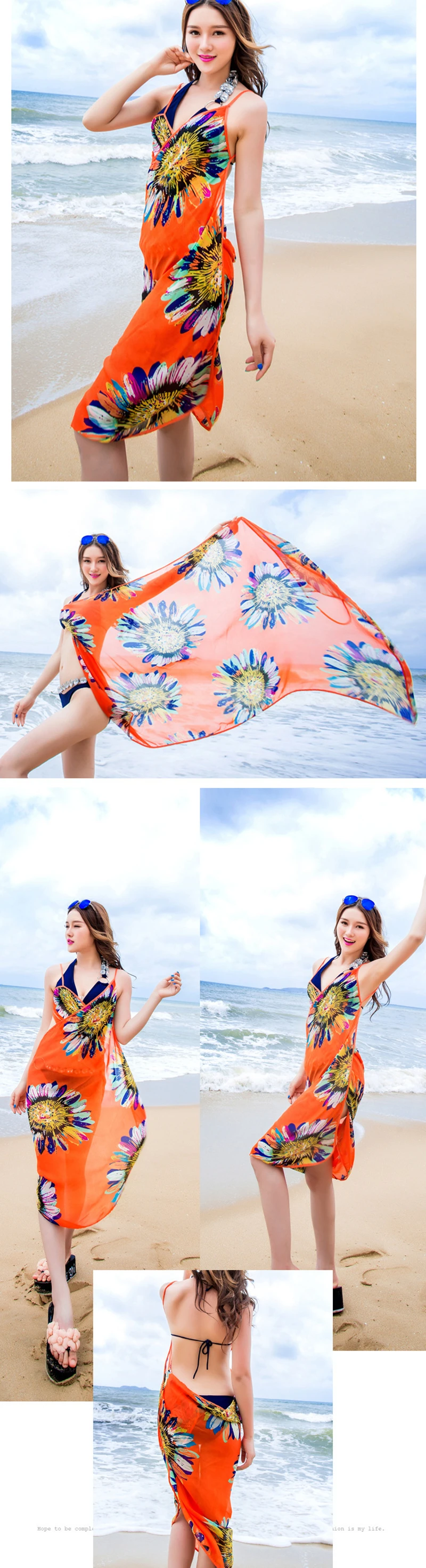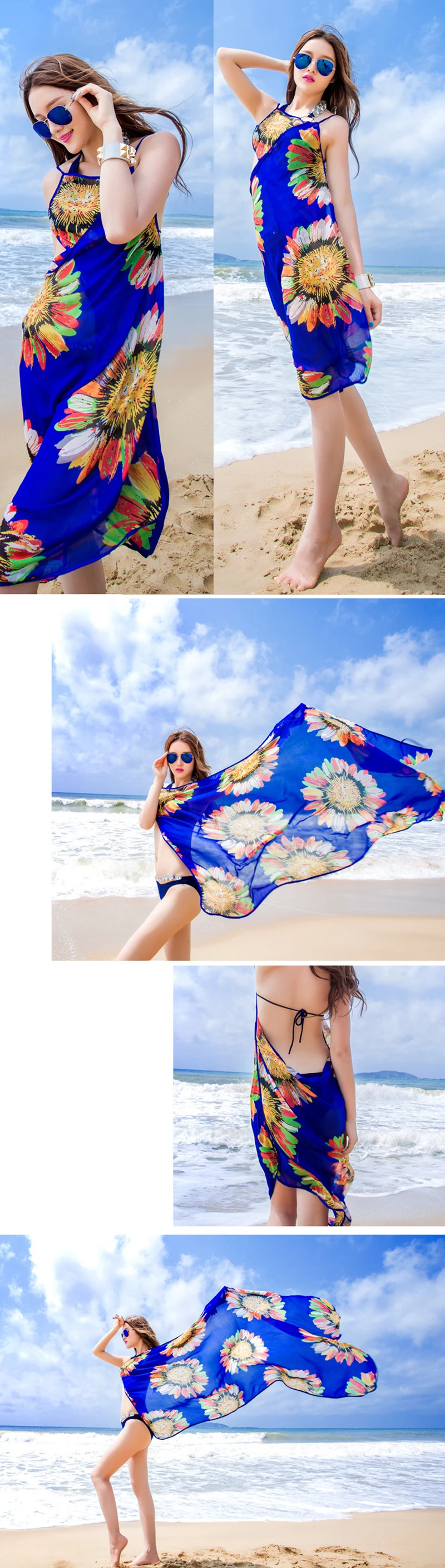 New Seaside Holiday Sun Flower Chiffon Strap Dress Sexy Beach Strapless