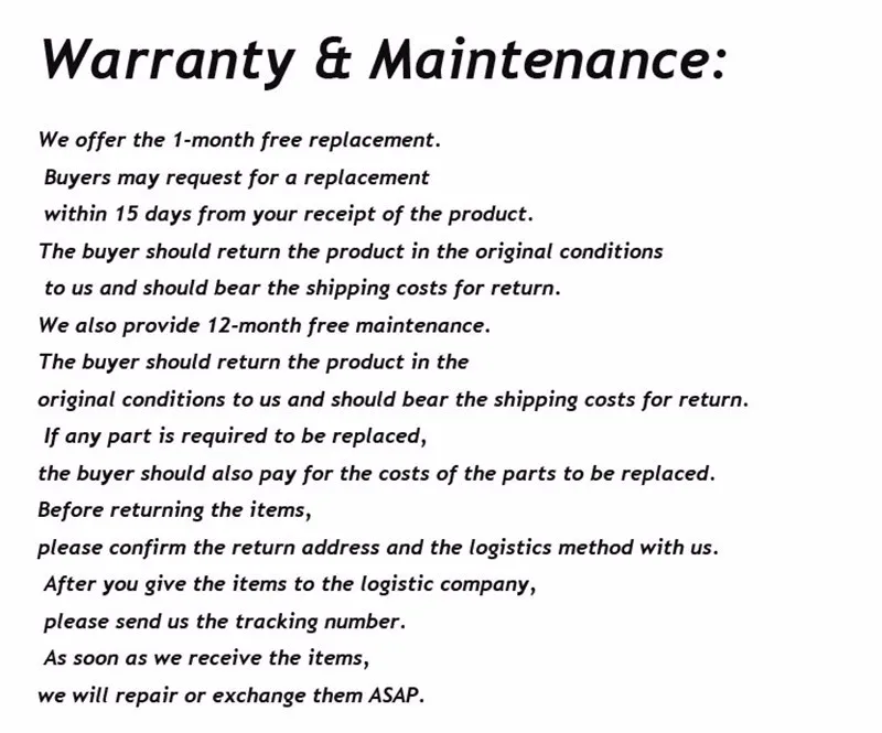 Please do not send your purchase back to us unless we authorise you to do so.
