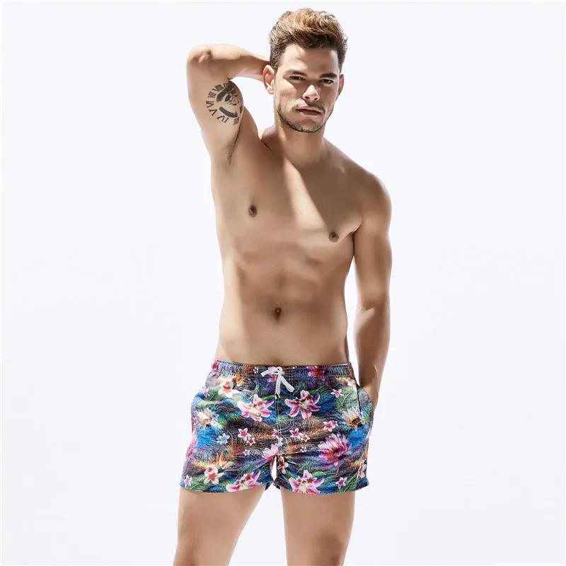 New Seobean Floral Mens Board Shorts Men Beach Swimsuit Short Male Bermudas Beachwear Bathing Suit Quick Dry Size M,L,XL