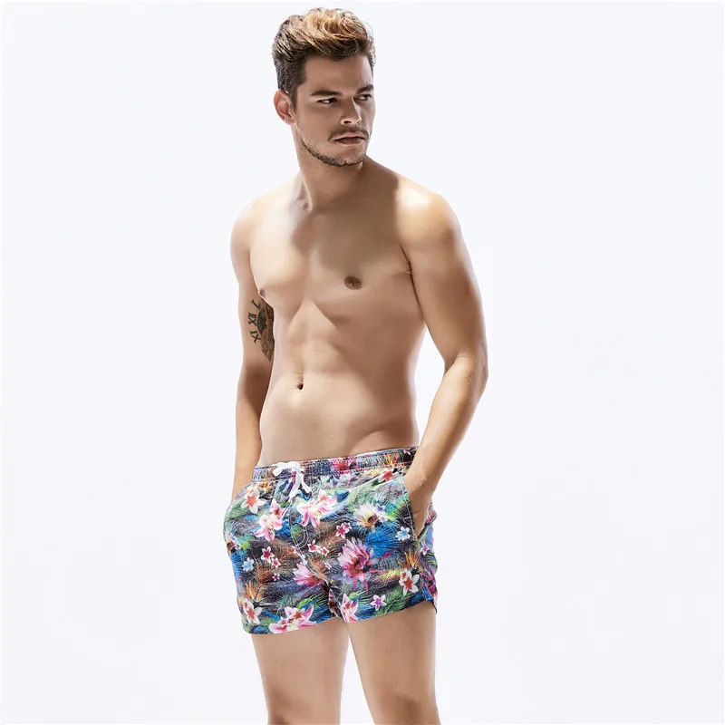 New Seobean Floral Mens Board Shorts Men Beach Swimsuit Short Male Bermudas Beachwear Bathing Suit Quick Dry Size M,L,XL 71306