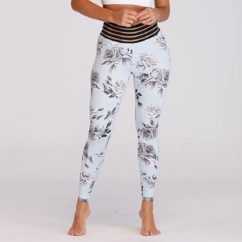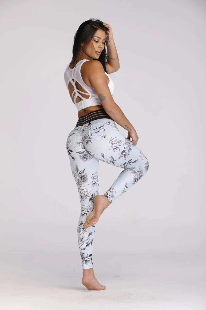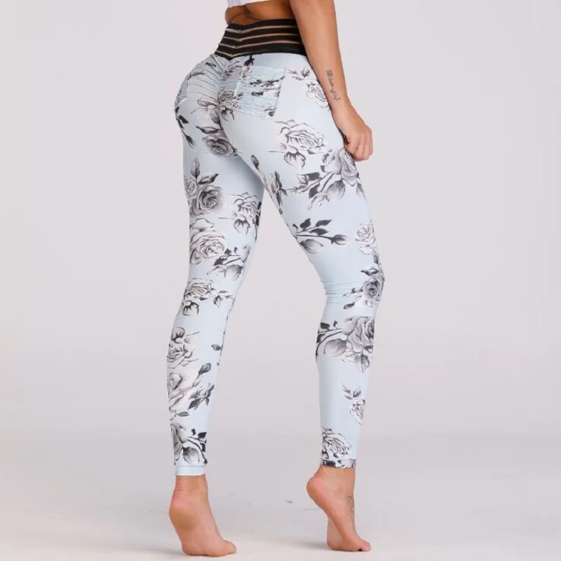 New Sexy Lace Splicing Waist Leggings Women Print Pocket Workout Clothes Push Up Fitness Female Elastic Slim Pants Leggins