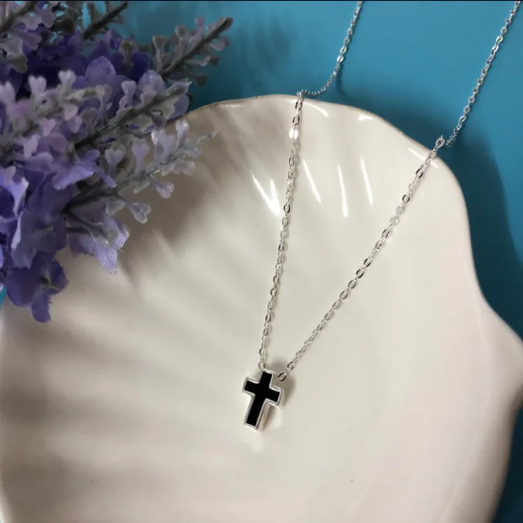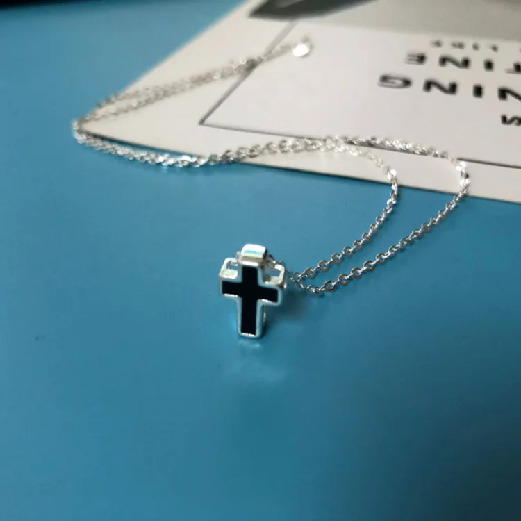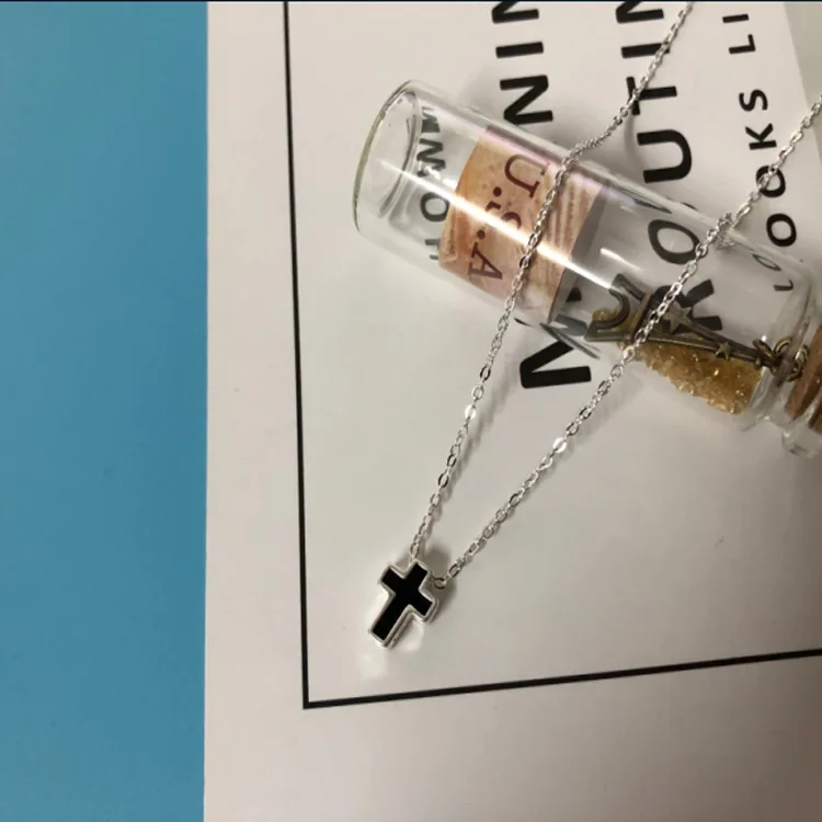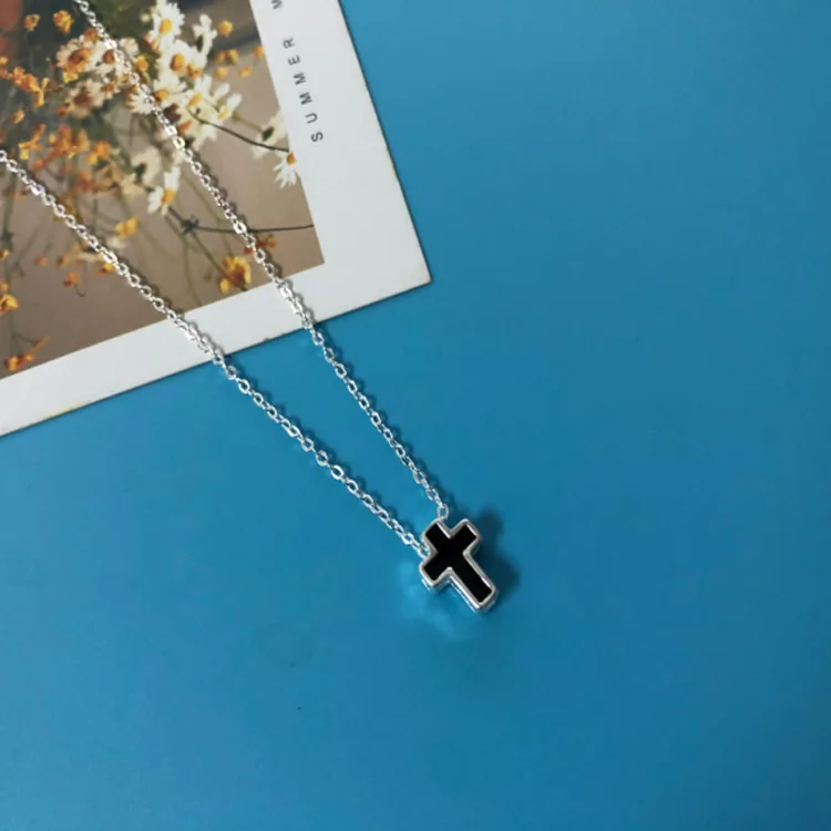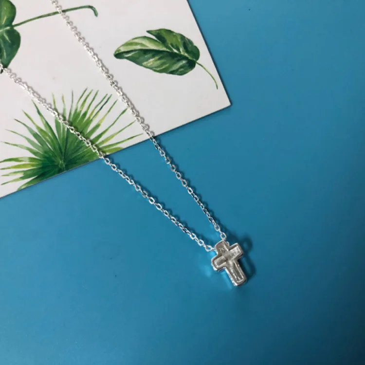 New silver cross necklace female simple art personality pendant fresh fashion short necklace BB03