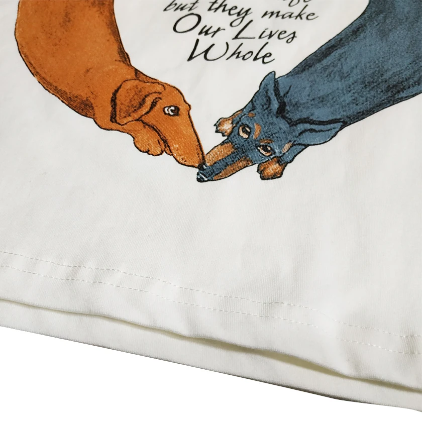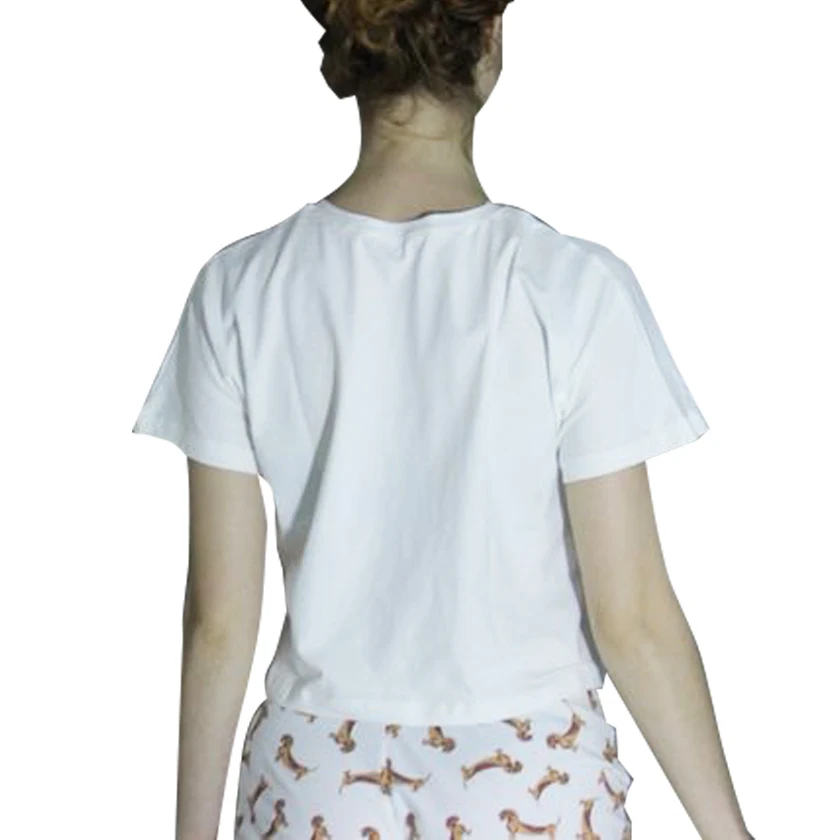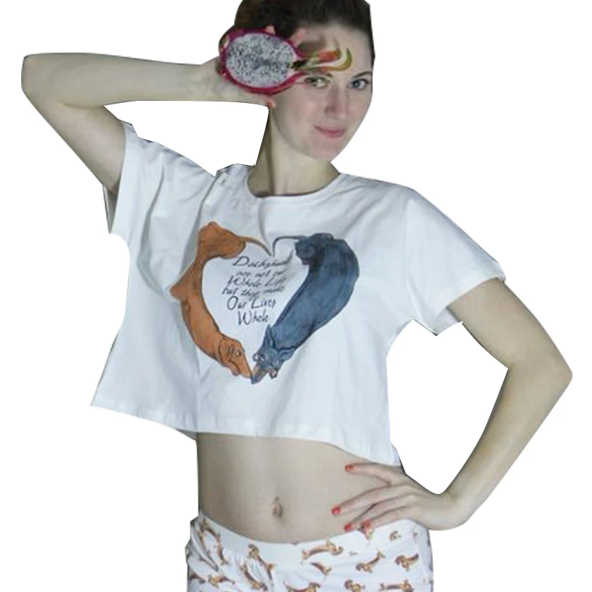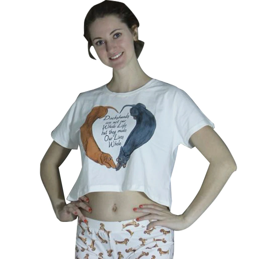 New Sleep Top Women White T shirt Crop Top Cute Loving Heart Dachshund Print Letters Loose Top Cotton Summer Short Sleeve T86594