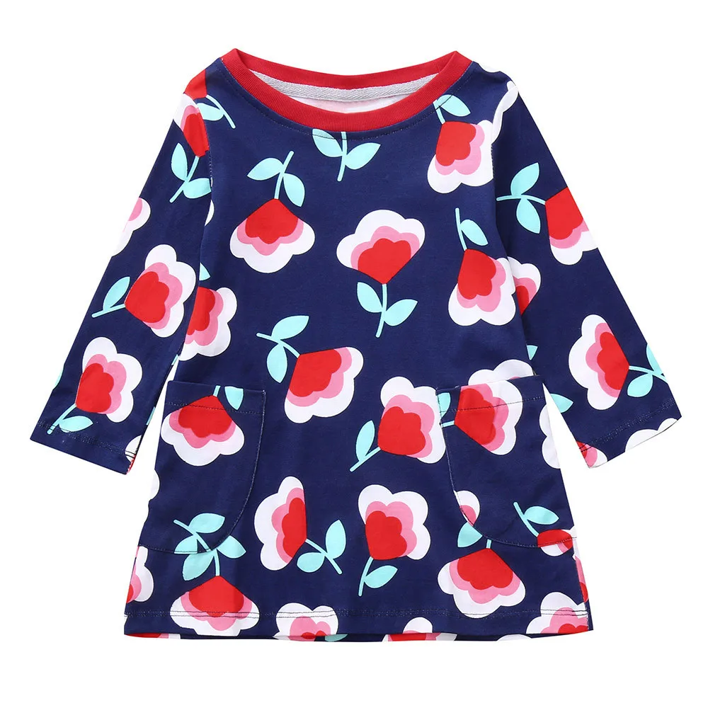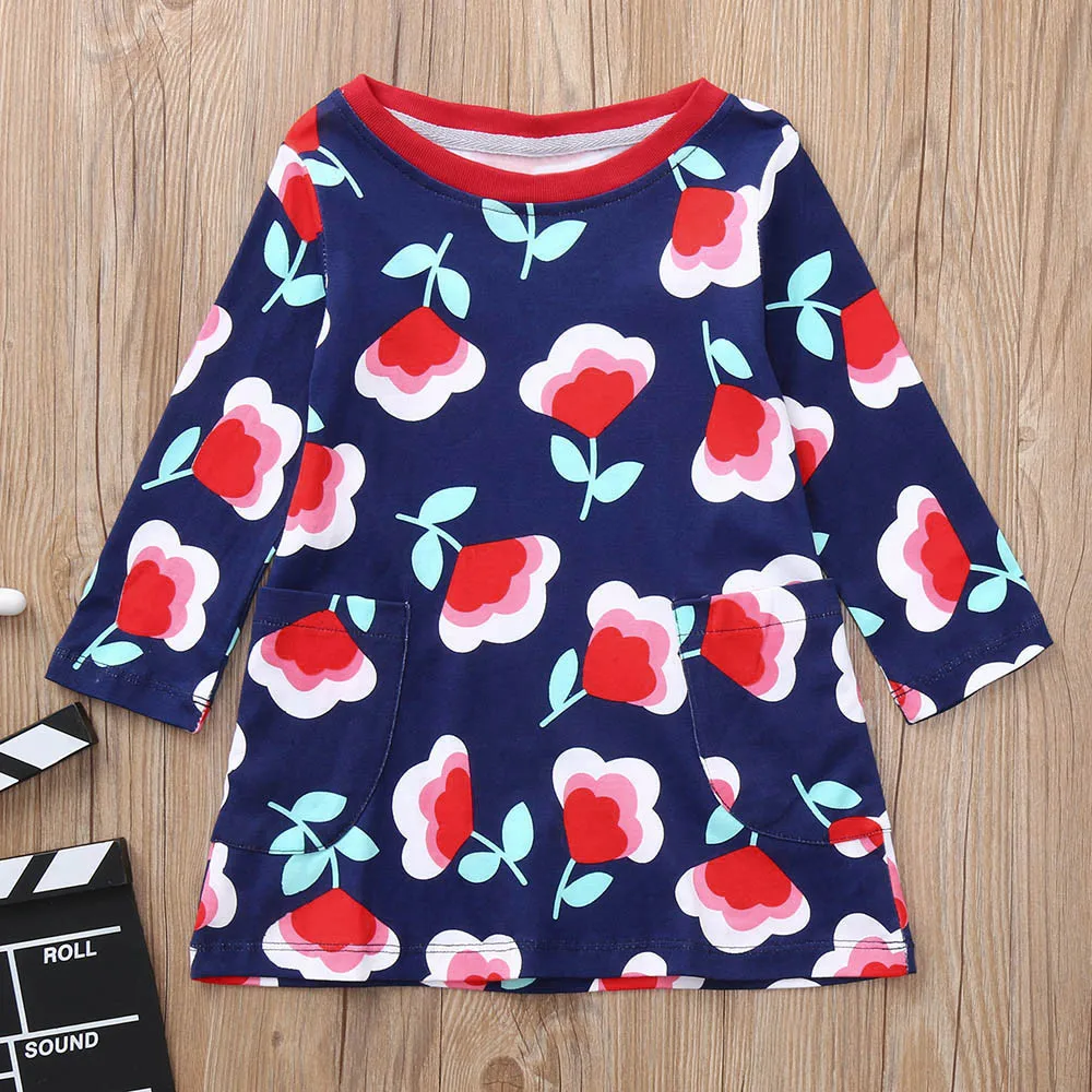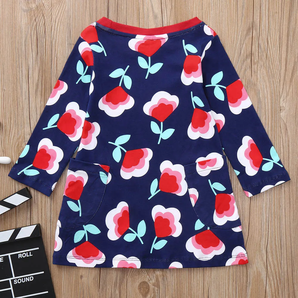 Children Kids Girls Long Sleeved Flower Floral Print Dress Clothing