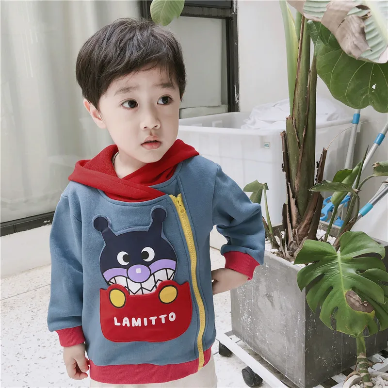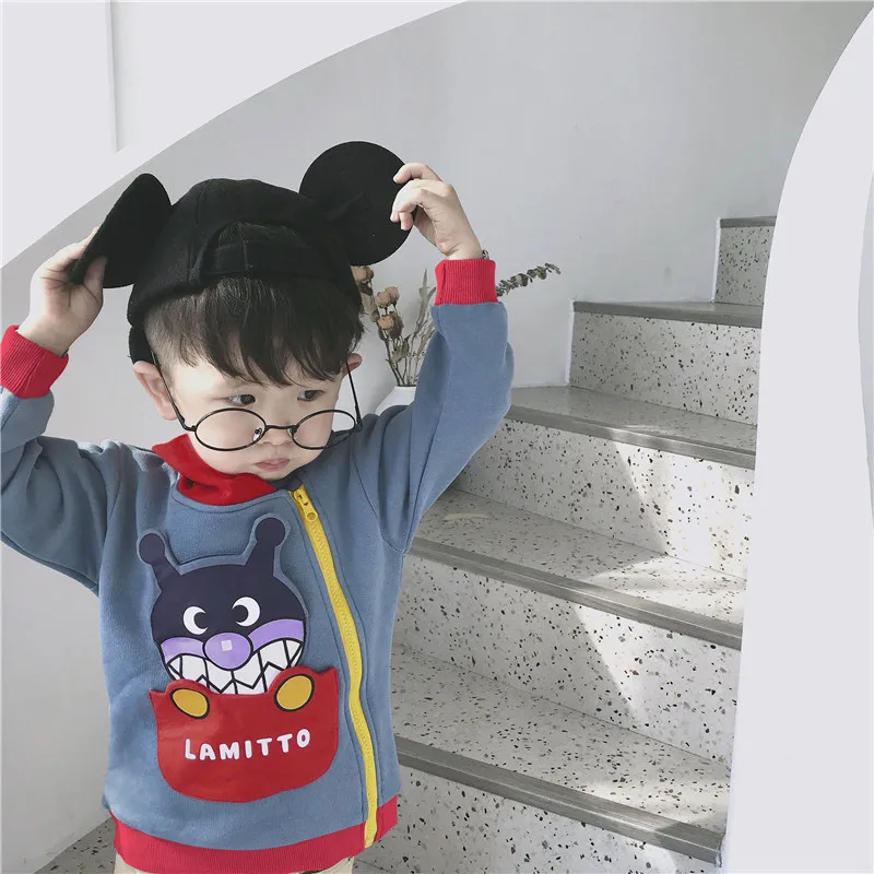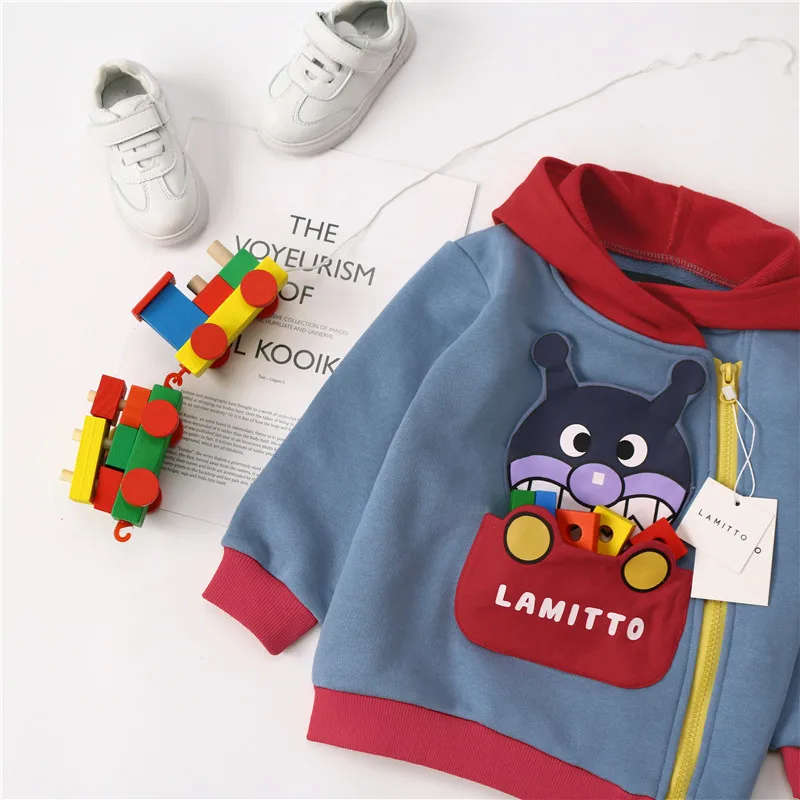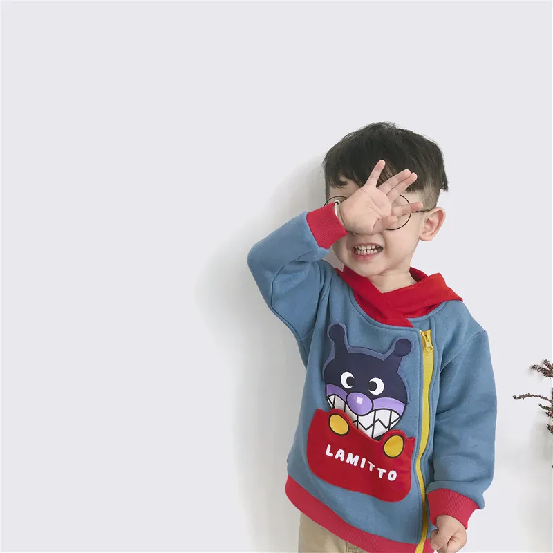 new spring autumn girls jackets kids fashion coat baby boy jacket Cartoon pattern pocket can be flipped hoodies kids clothes