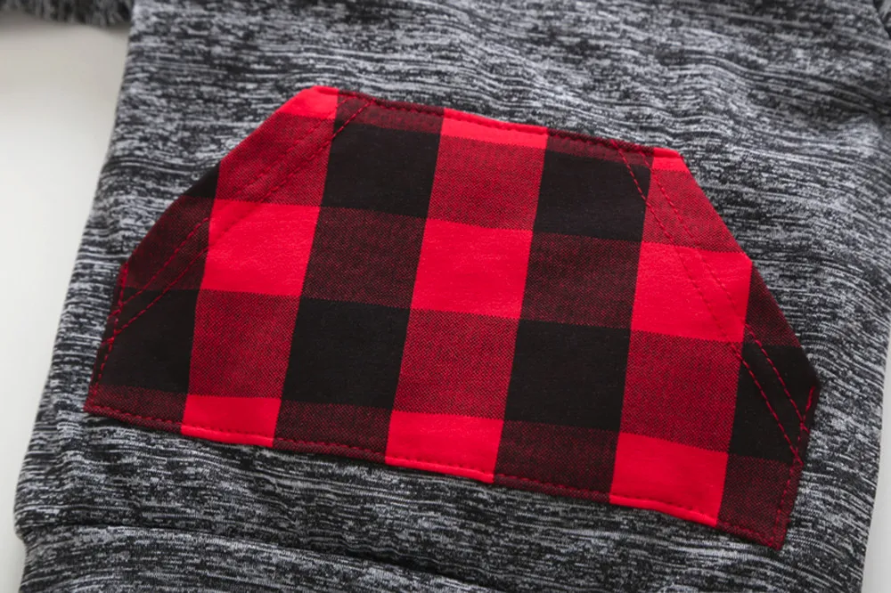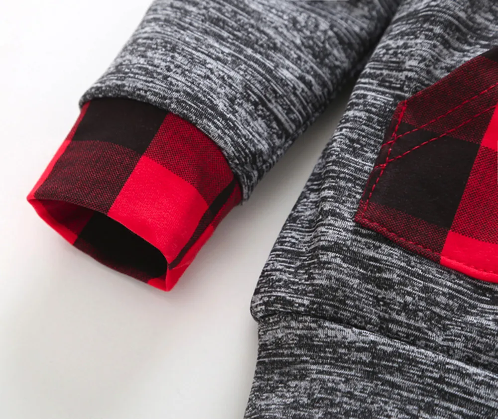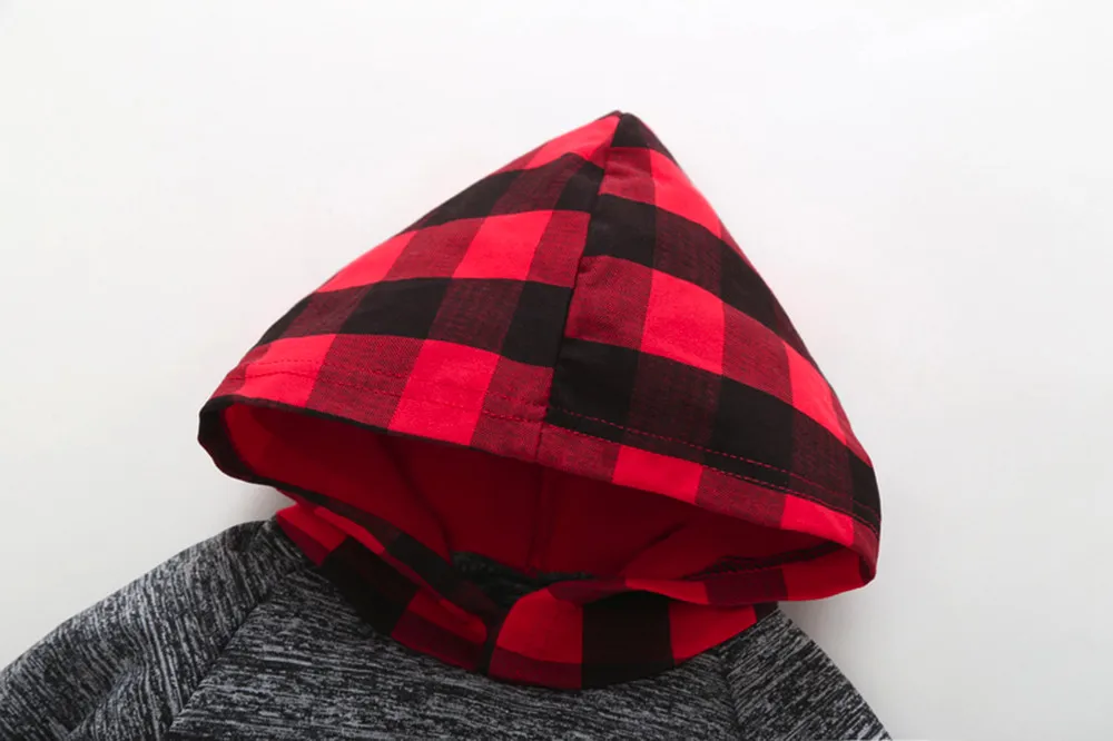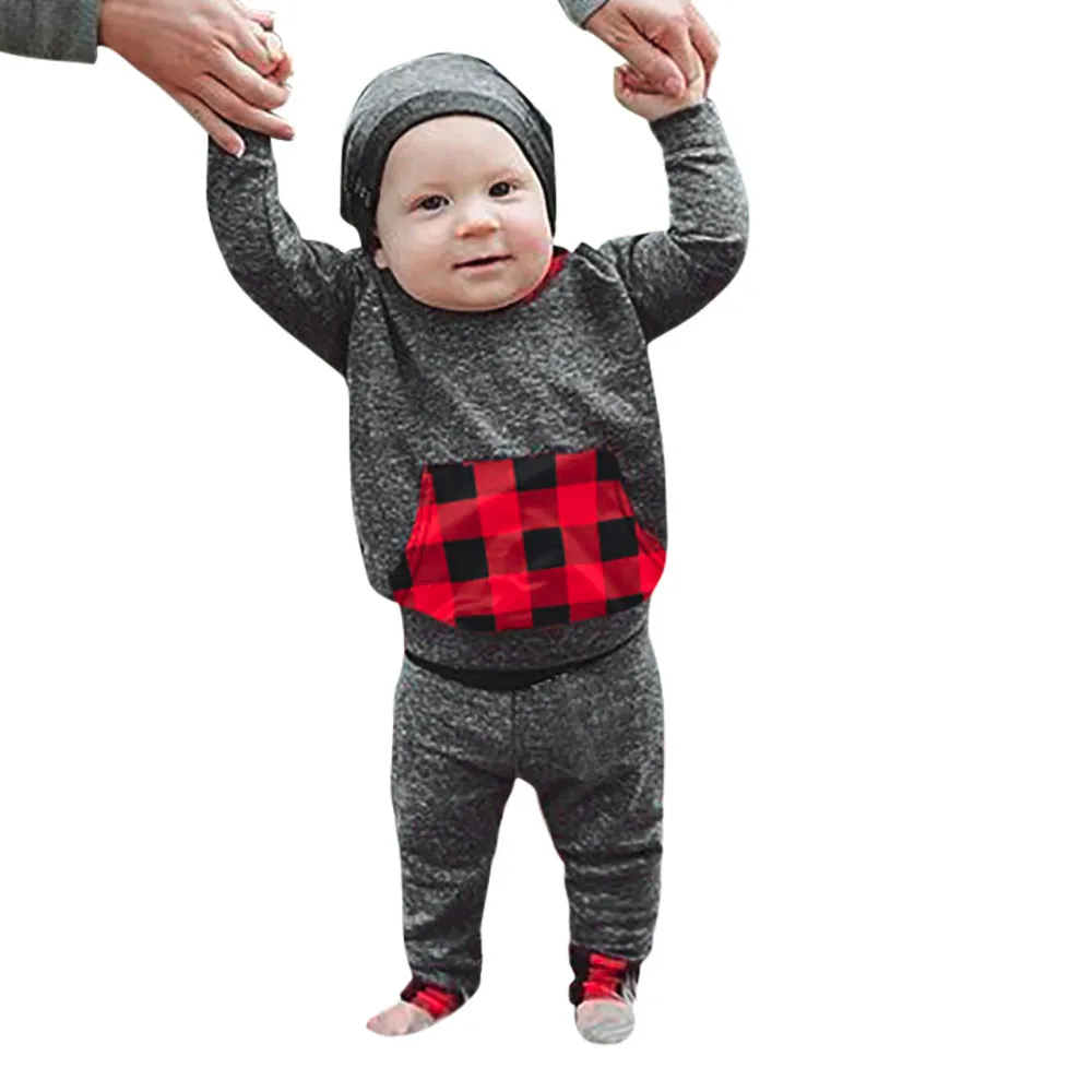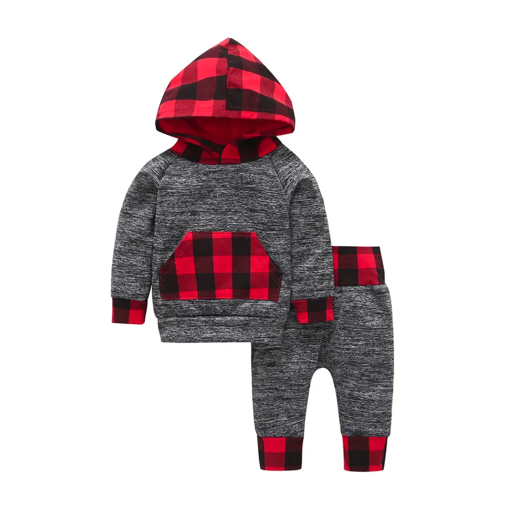New Spring Autumn Infant Baby Boy Plaid Hoodie Pocket Sweatshirt Pullover Tops Pants Clothes Sets Fashion Baby Girls Clothes 30