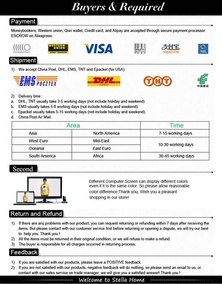 • If you did not receive the product within the guaranteed time( 45 days not including 2-5 day processing) you can request a refund or a reshipment.