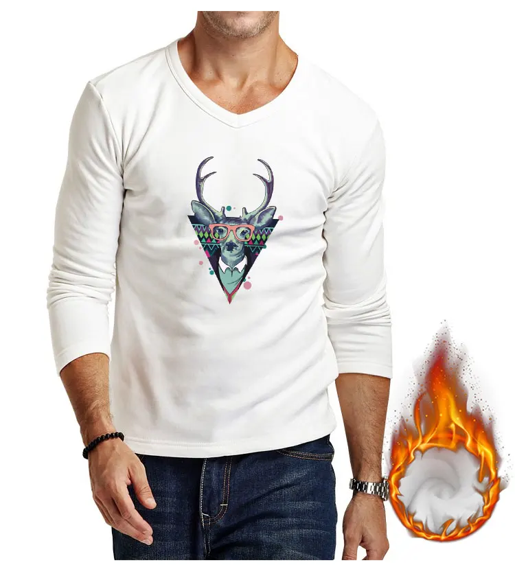 New Style Mens Underwear Shirt Winter Deer Printed Warm Thermal Undershirts Plus Velvet Basic Tops Man Cotton Undershirt Tshirt