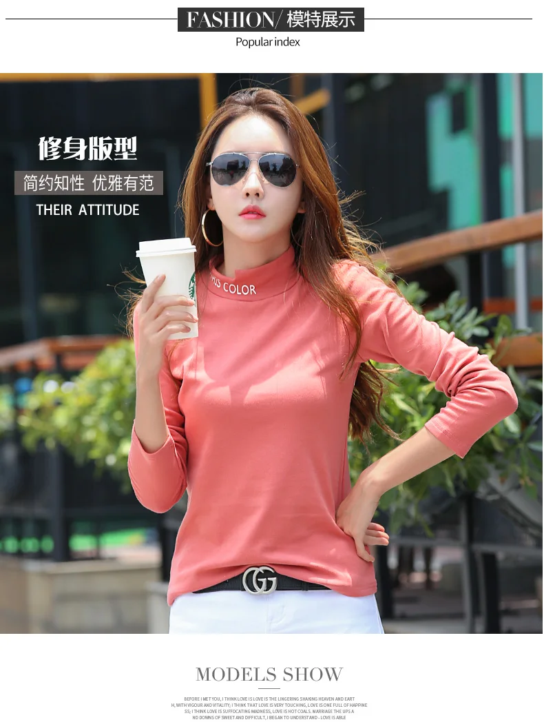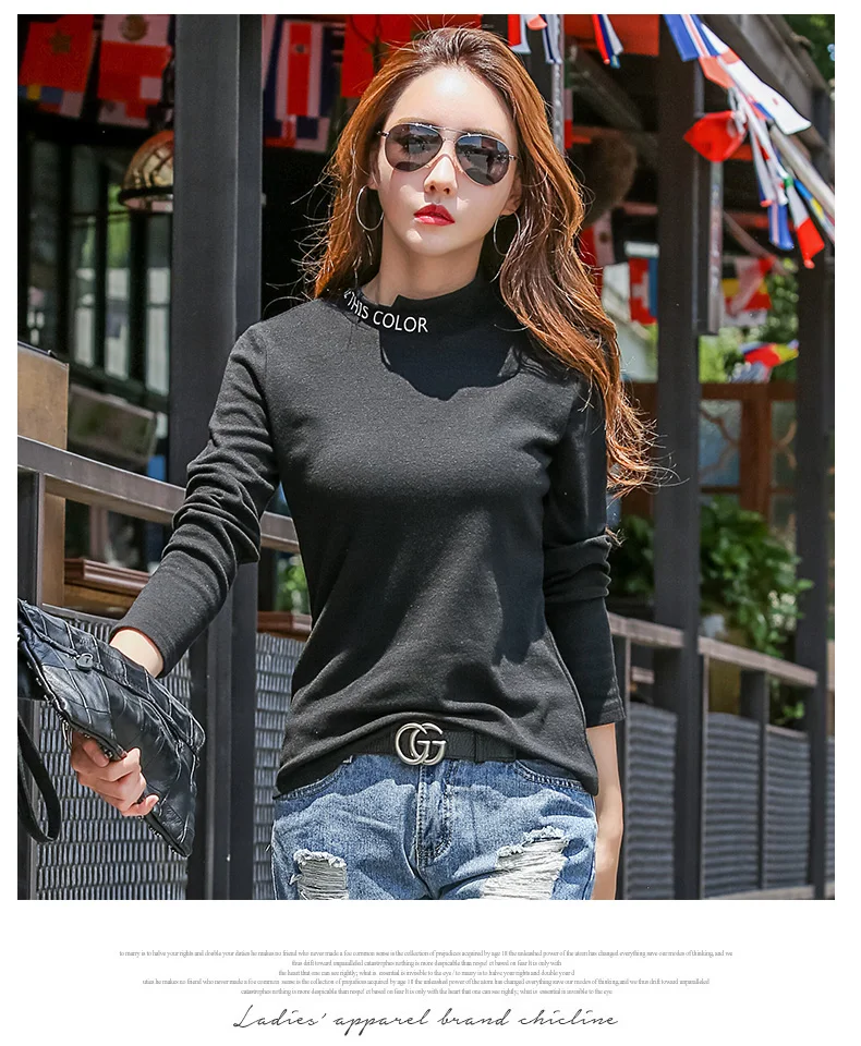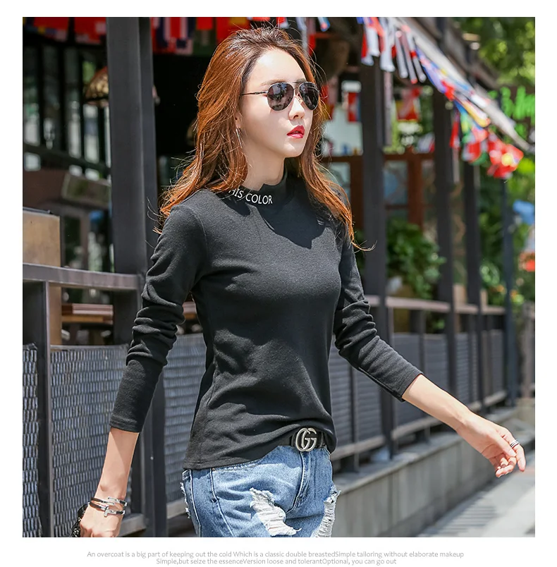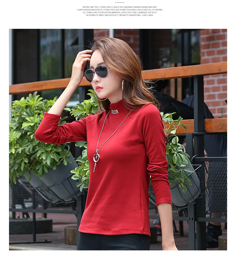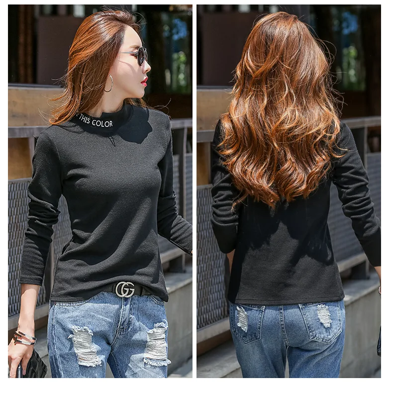 New 2018 Winter Female T-shirt Turtleneck Long Sle…