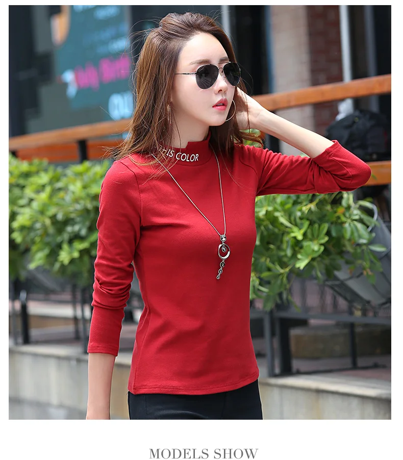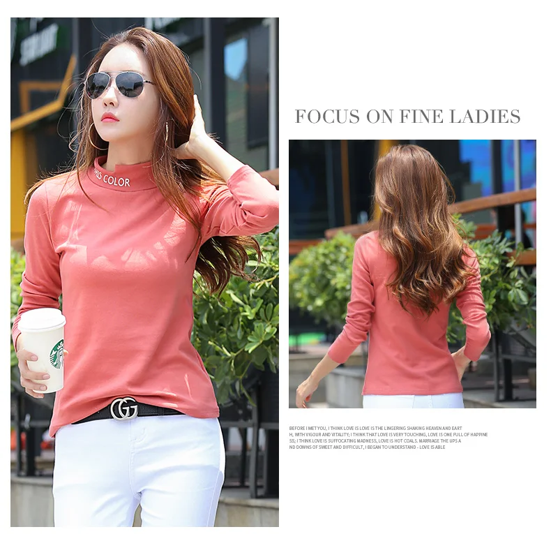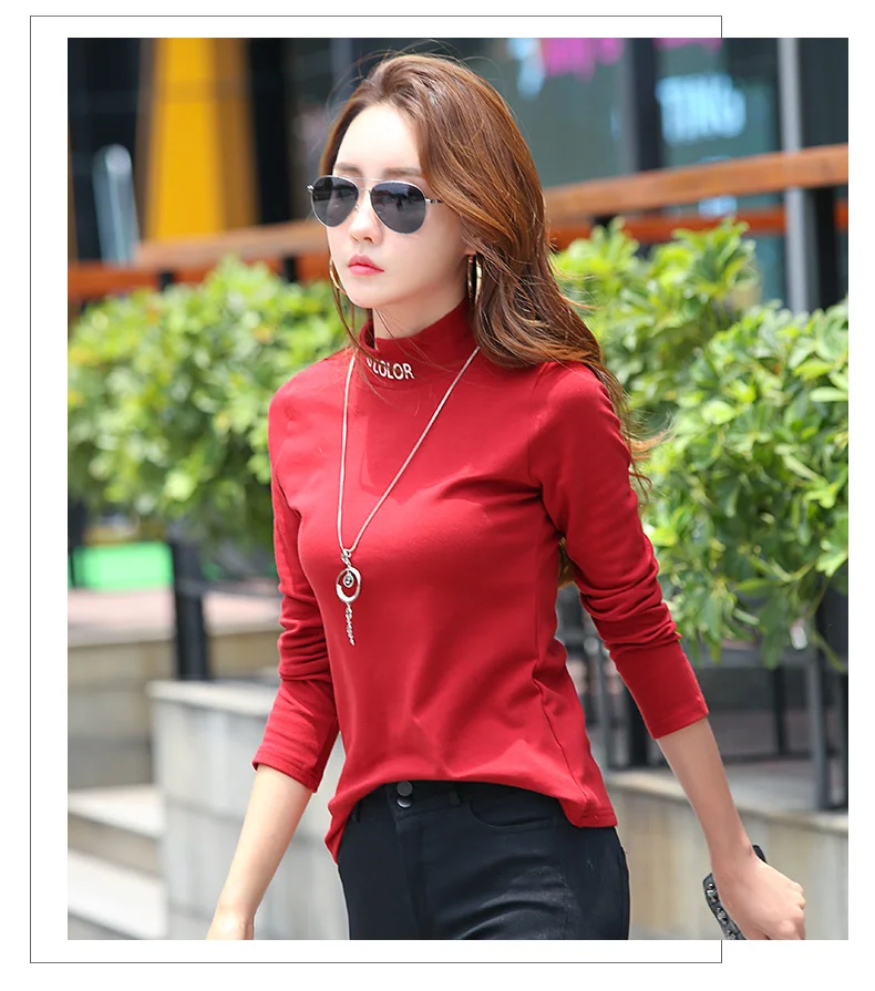 New T-shirts For Women Long Sleeve Cotton T Shirt Ladies Winter Top Tee Solid Poleras Mujer Turtleneck Female T-shirt Camisetas