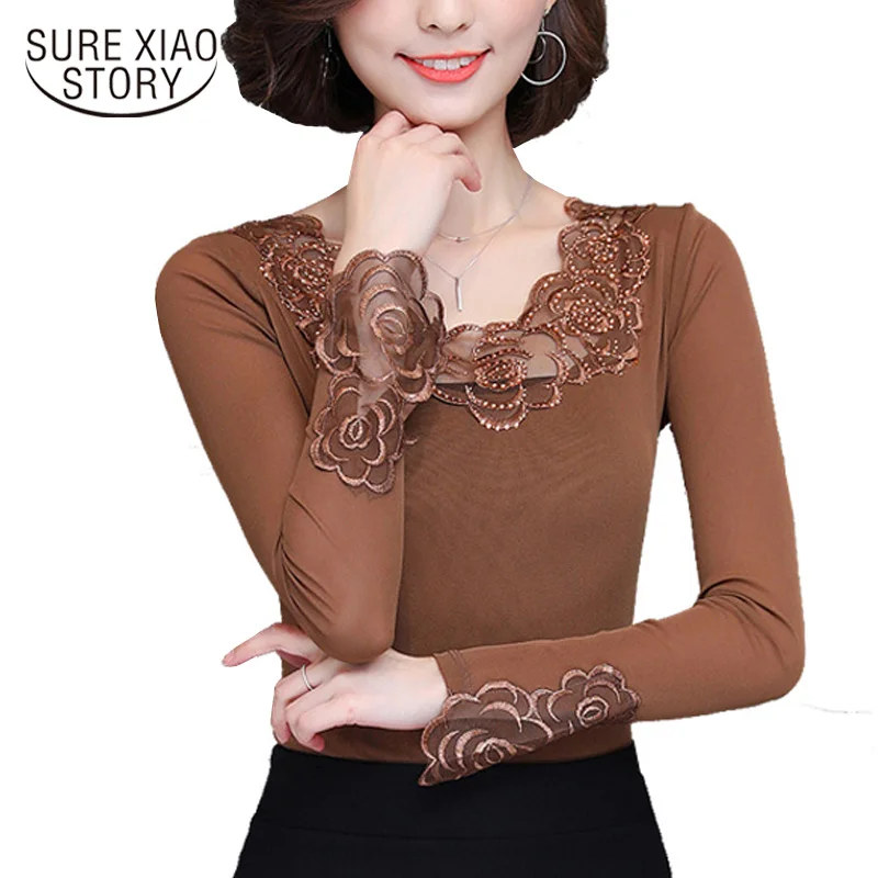 New V-neck Organza Embroidered Shirt White Lace Blouse Top Plus Size Summer Korean Women Blouse Flower women Blouse 566F 25