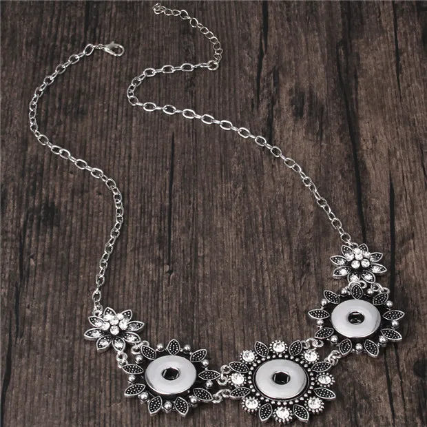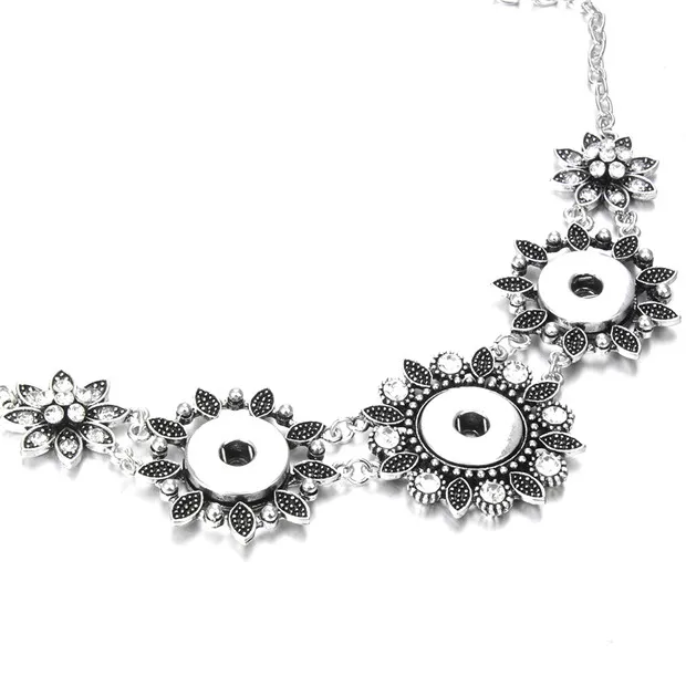 New Vintage Crystal Flower Bohemia Choker Necklace Snap Jewelry for Women 18mm Snap Buttons Pendant Necklace for Women Jewelry