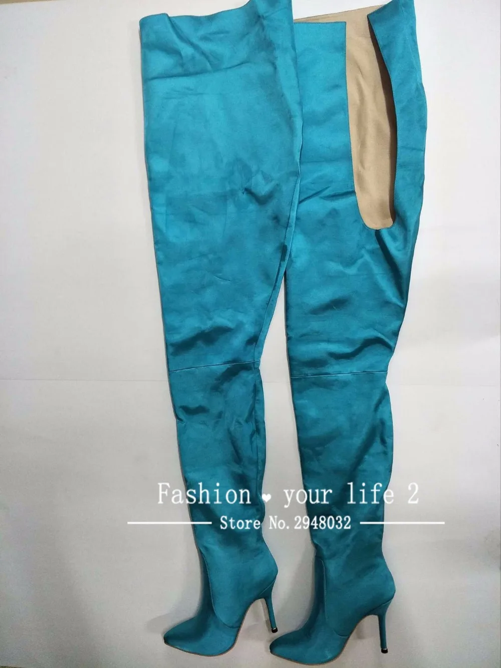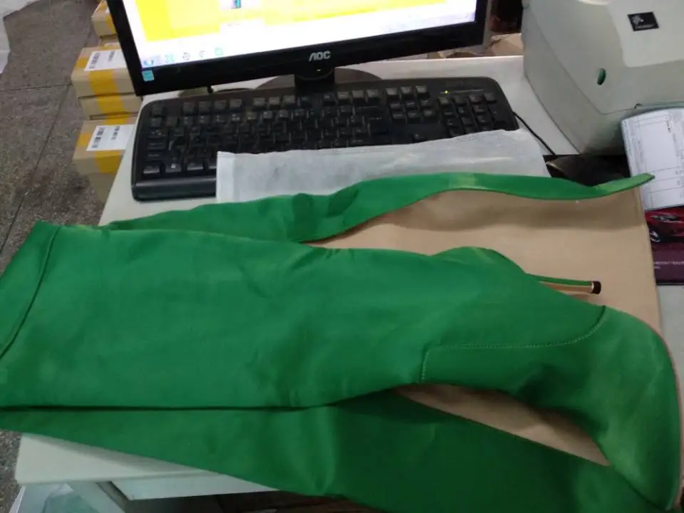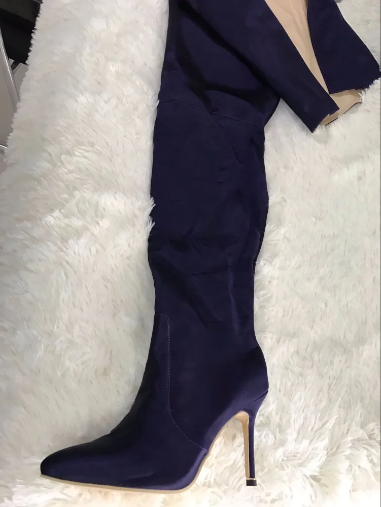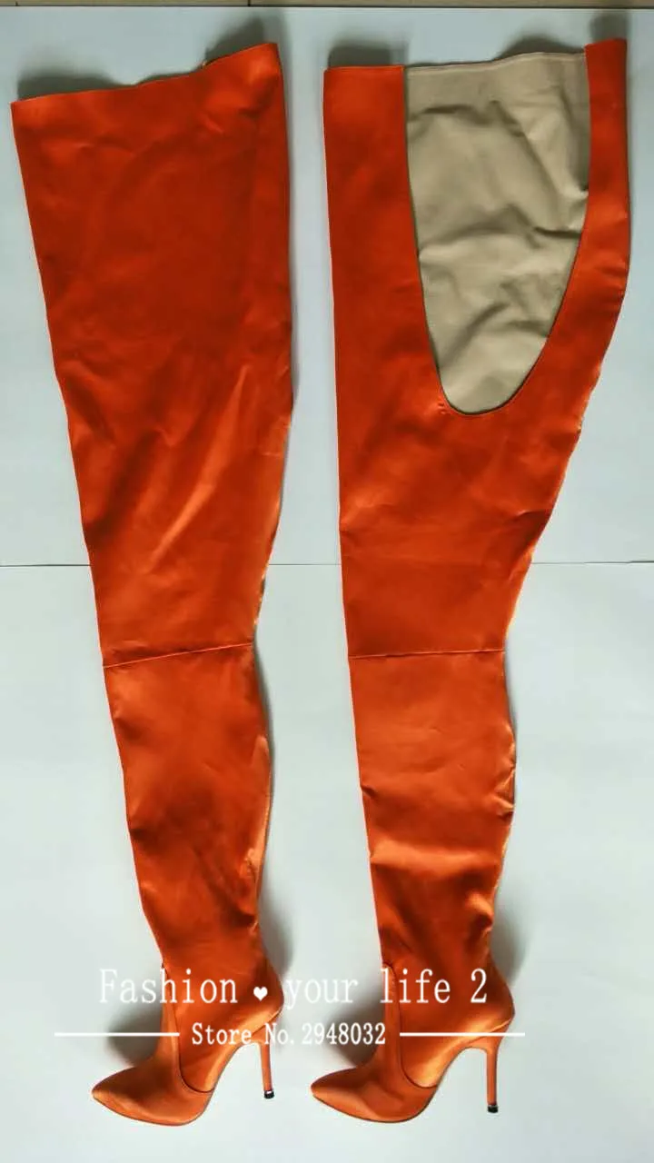 NEW Woman Extreme Long Waist High Boots Fluorescence Color Stretch Satin Thin High Heels Pointed toe Stage Long Booties Shoes