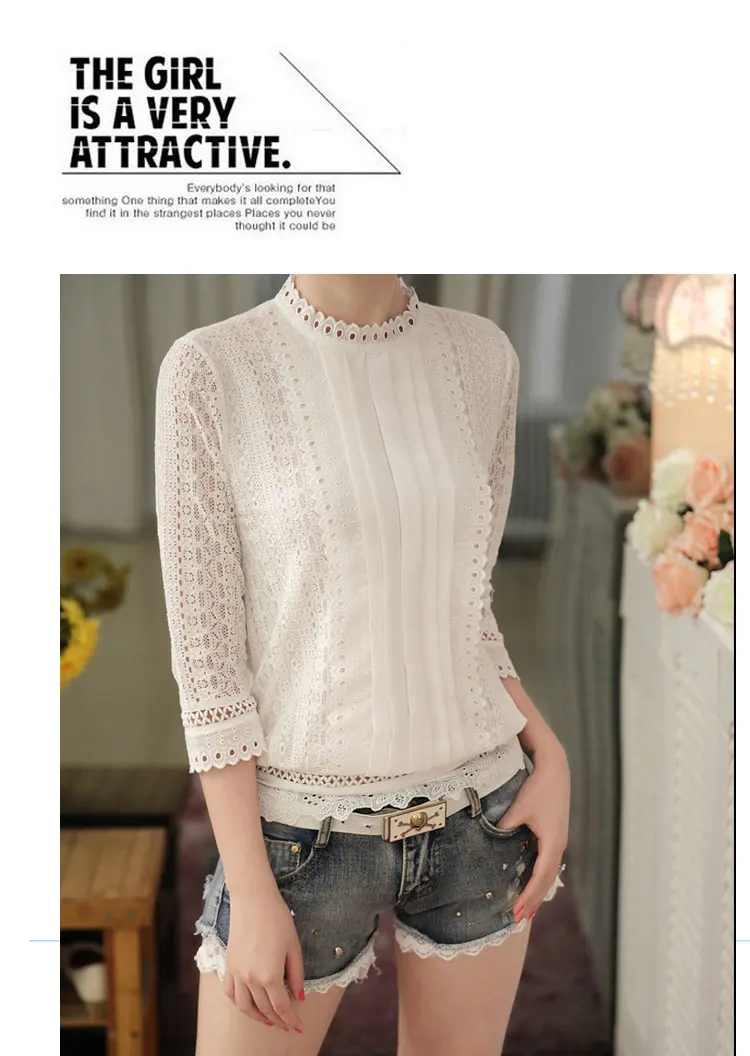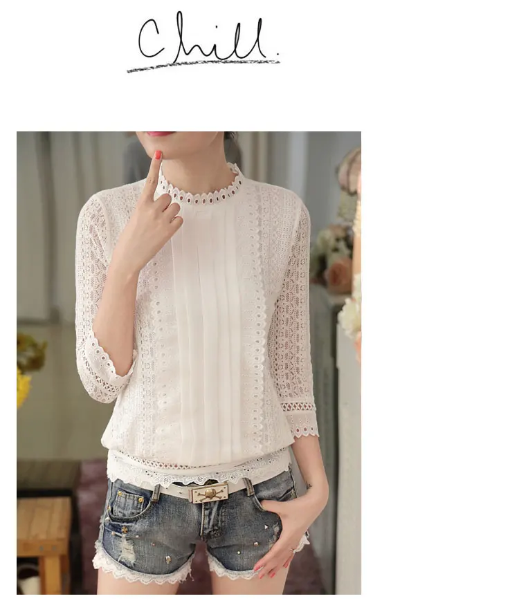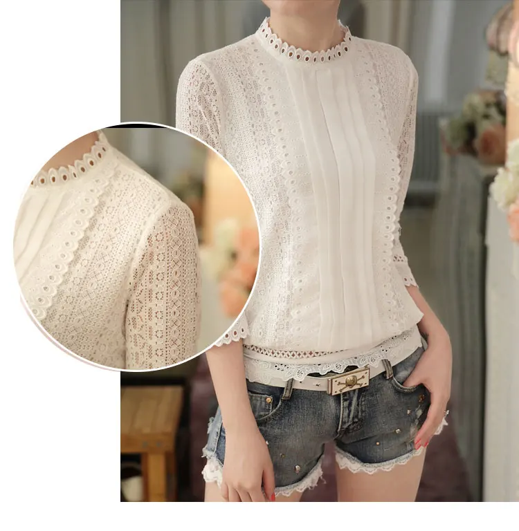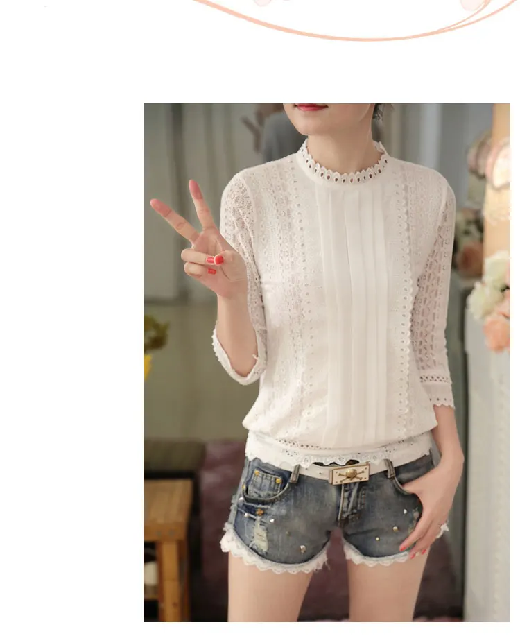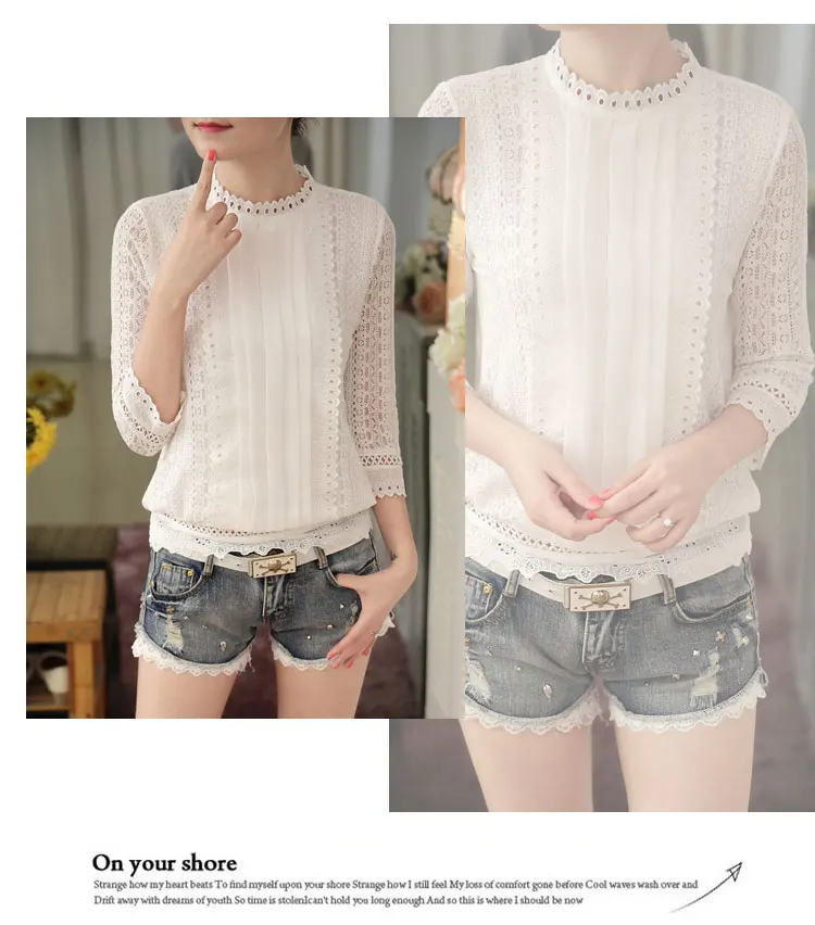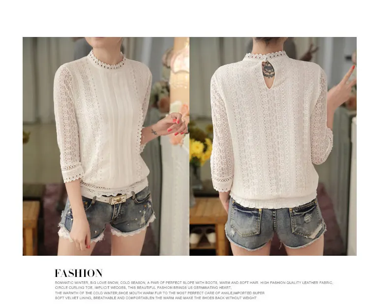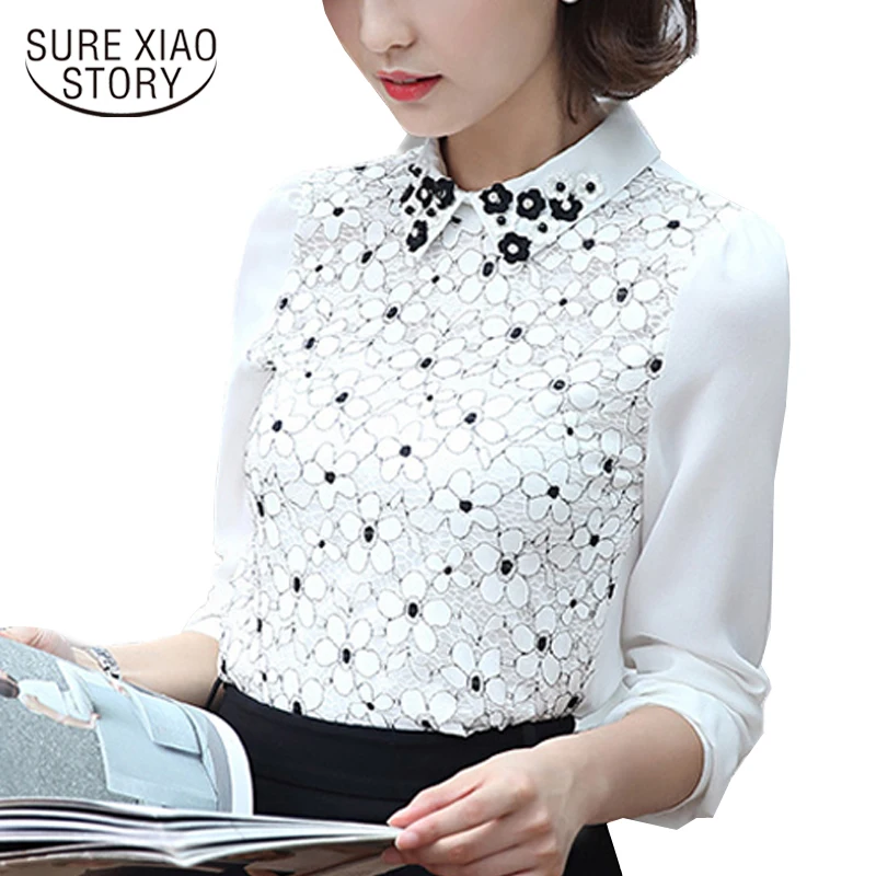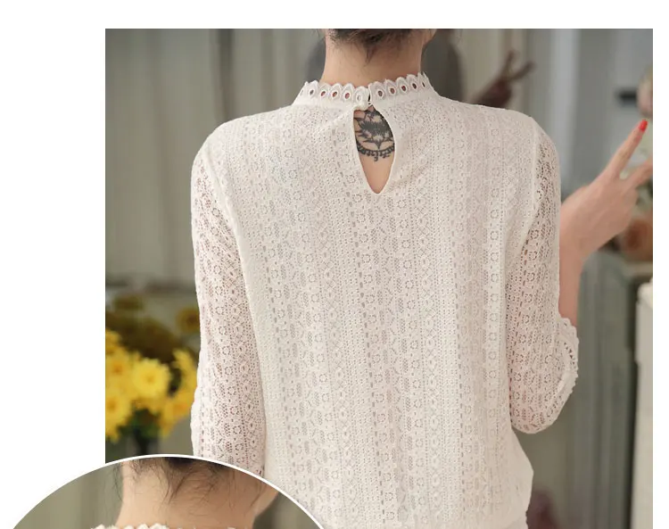 New Women Blouses Korean Style Ladies Chiffon Shirts 2016 Autumn Three Quarter Sleeve Stand Collar Clothes Plus Size Tops 61J 25